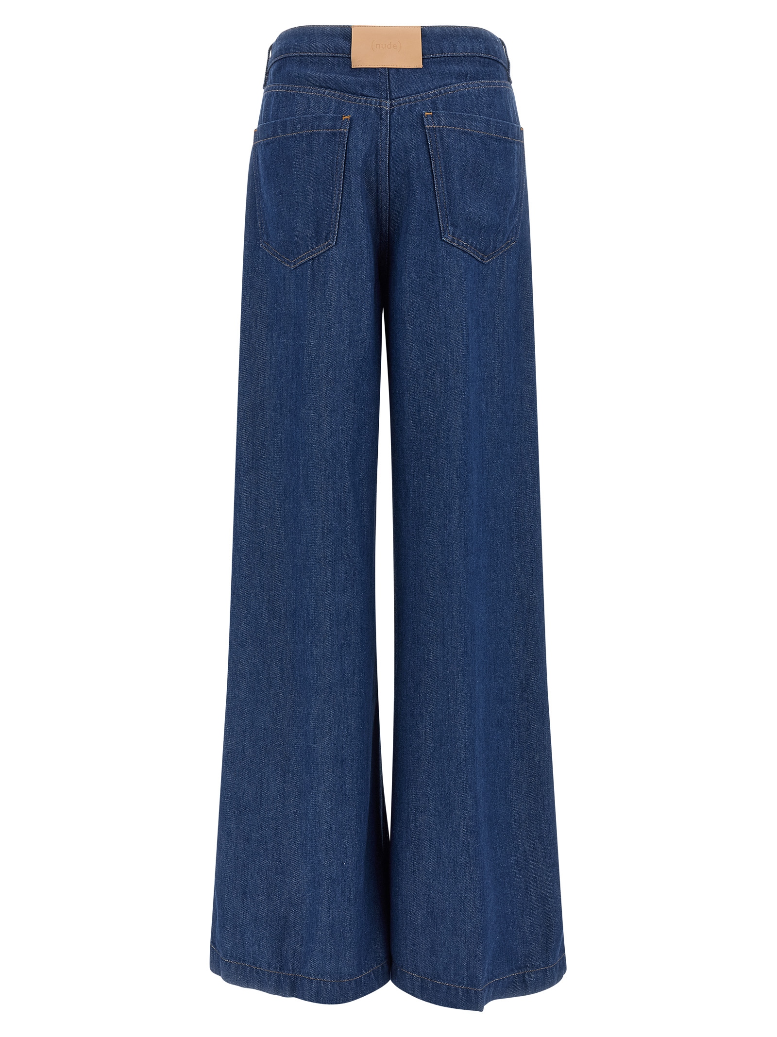 ‘Tilda’ wide leg denim jeans with high waist, front zip and button closure, belt loops at the waist, slanted side pockets and back patch pockets.