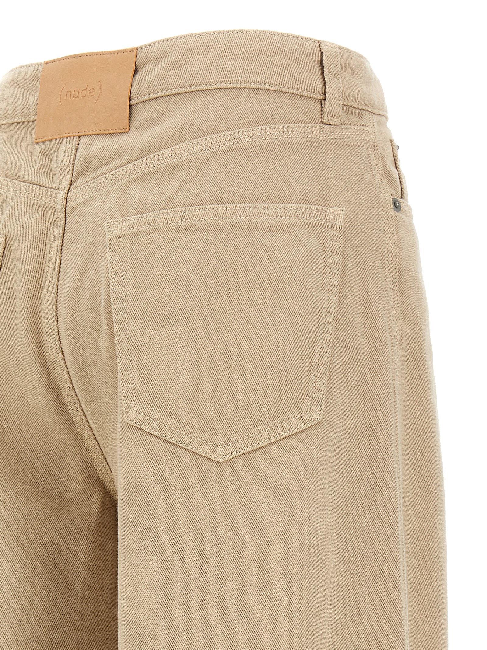 ‘Tilda’ cotton drill trousers, loose and flared leg, medium waist, zip and front button closure, five pockets. Back logo tag.