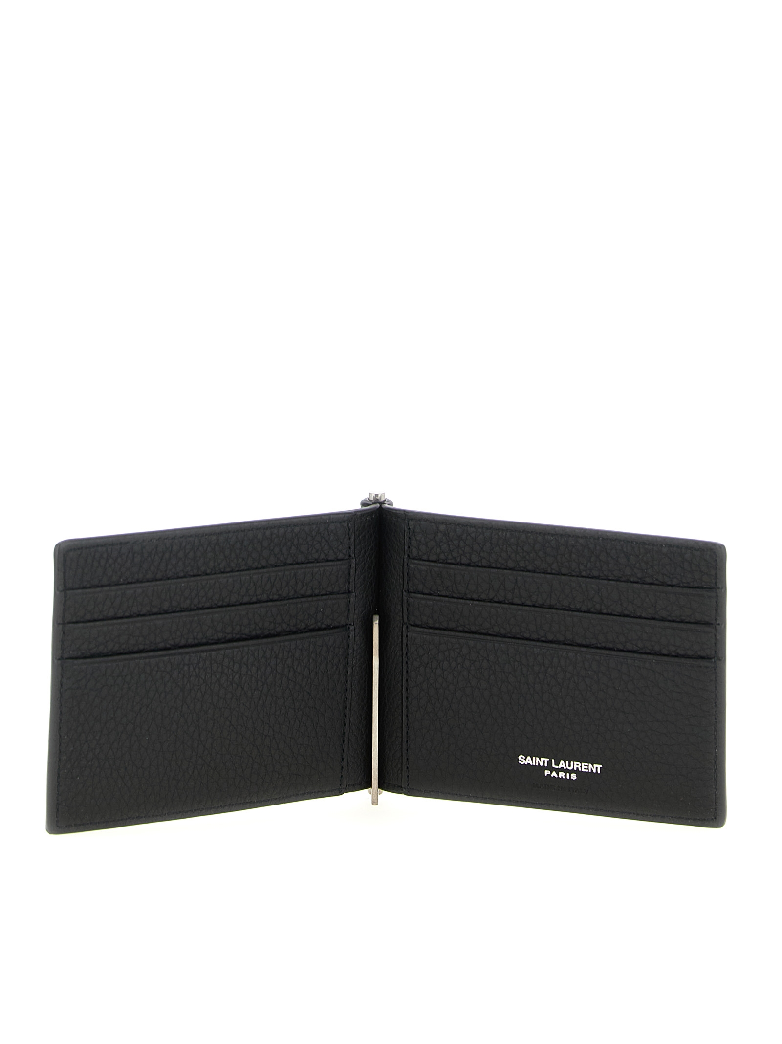 Hammered leather card holder, front metal ‘Tiny Cassandre’ logo, book opening.