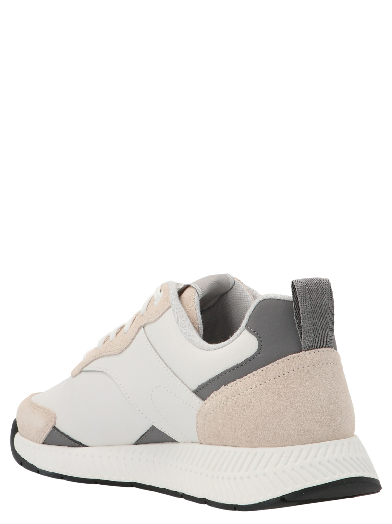 ‘Titanium’ lace-up, low-top sneakers in soft leather and suede featuring reflective inserts.
