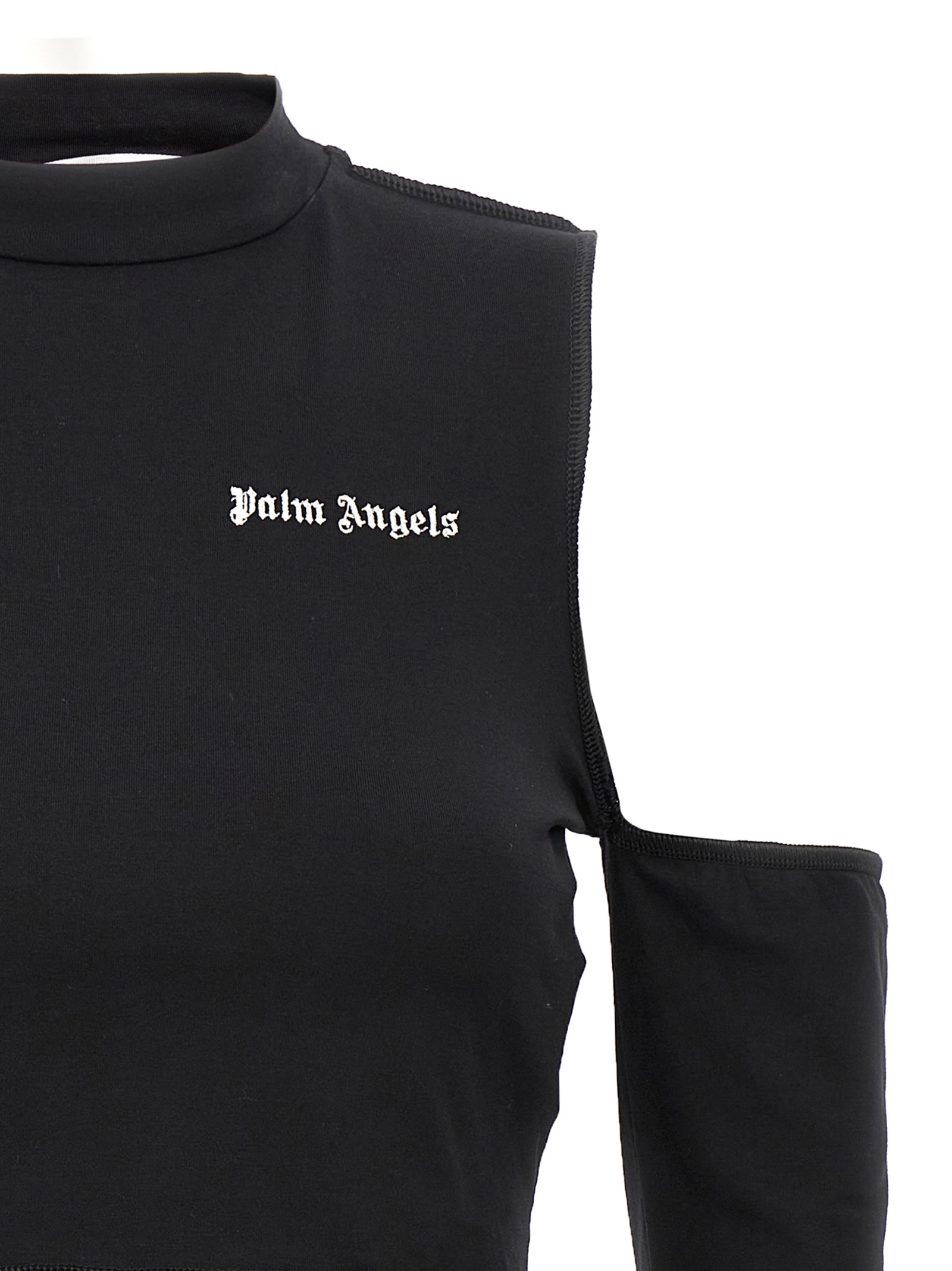 Cotton top with cut-out details, crop pattern with mock neck and logo embroidery.