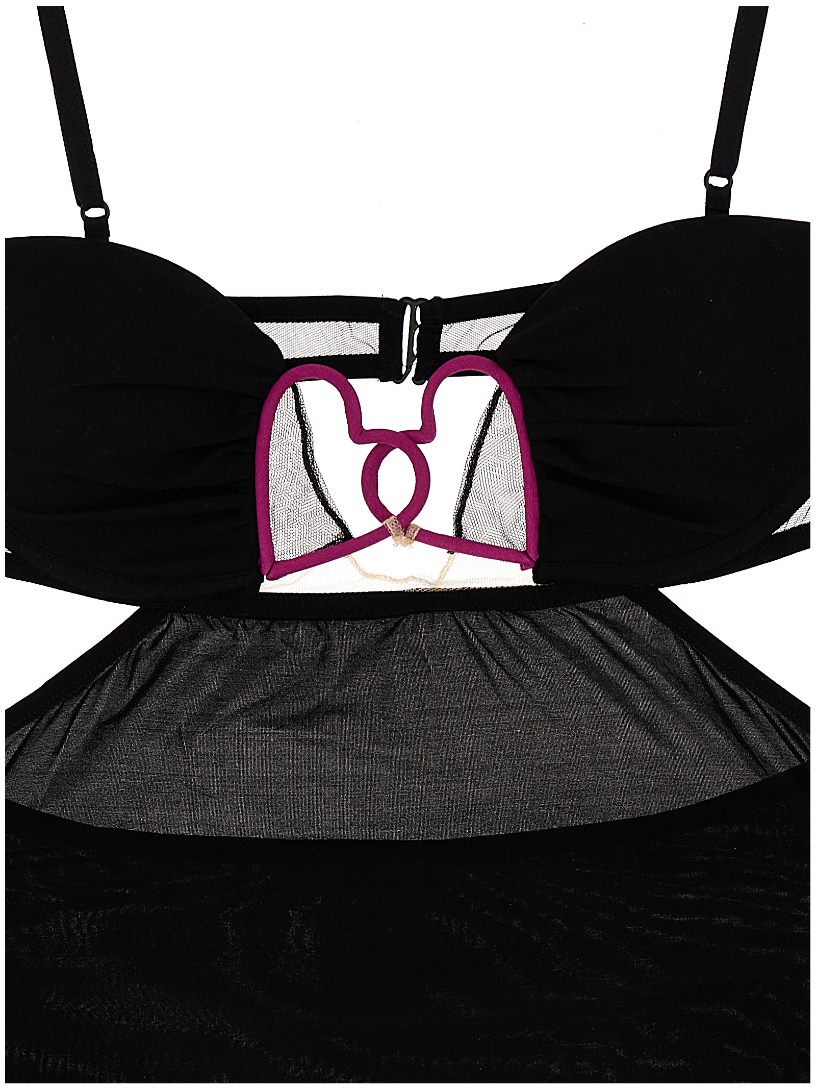 Heart Bra’ stretch silk blend top with front heart details, thin and adjustable shoulder straps, back hook closure and cut out details.