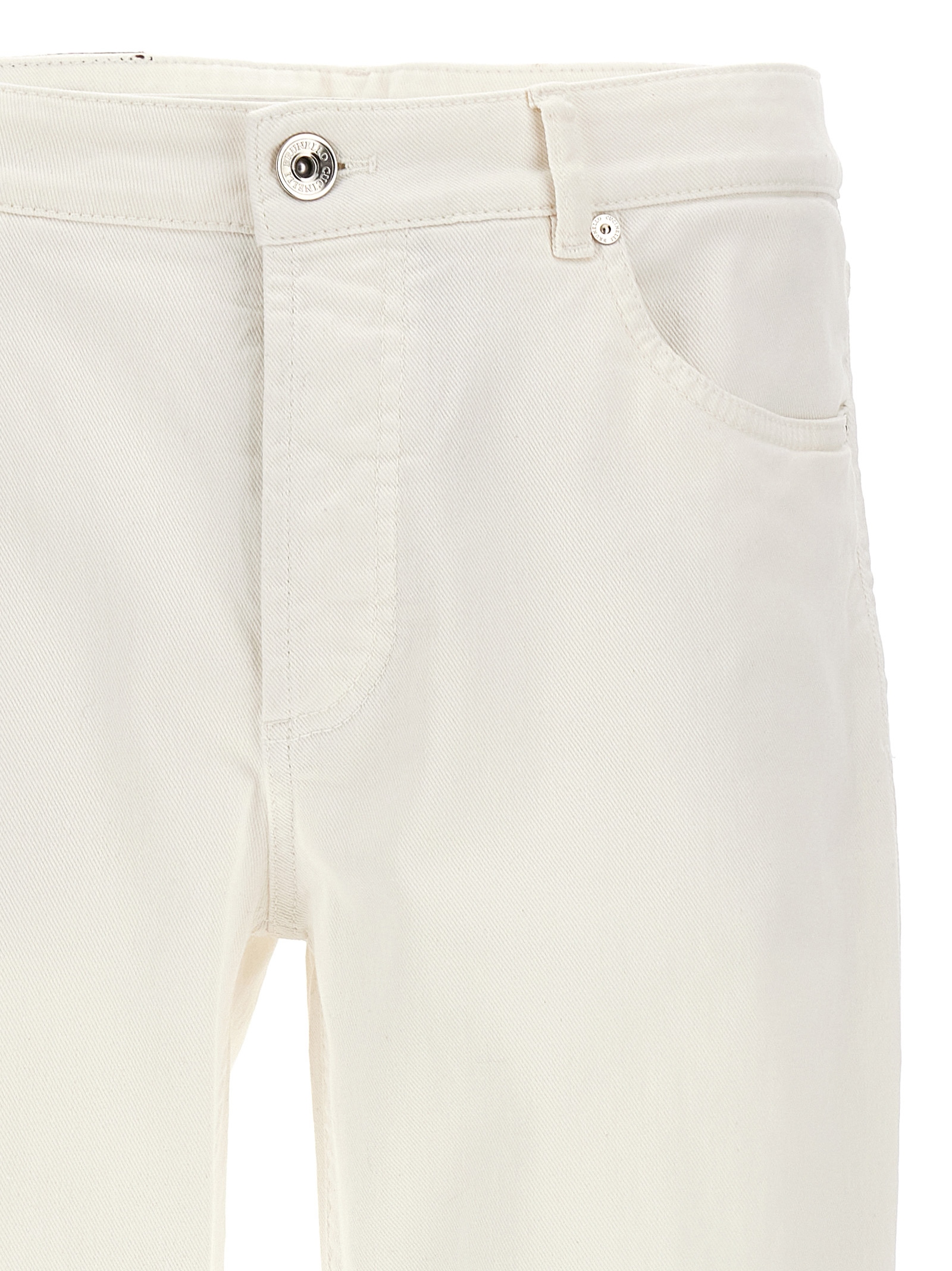 Denim jeans, traditional fit with turn-up, zip and button closure.