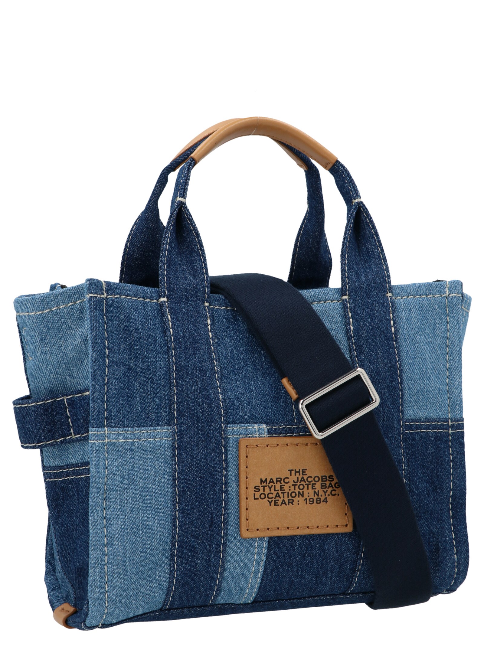 ‘Traveler’ mini denim shopping bag with a logo.