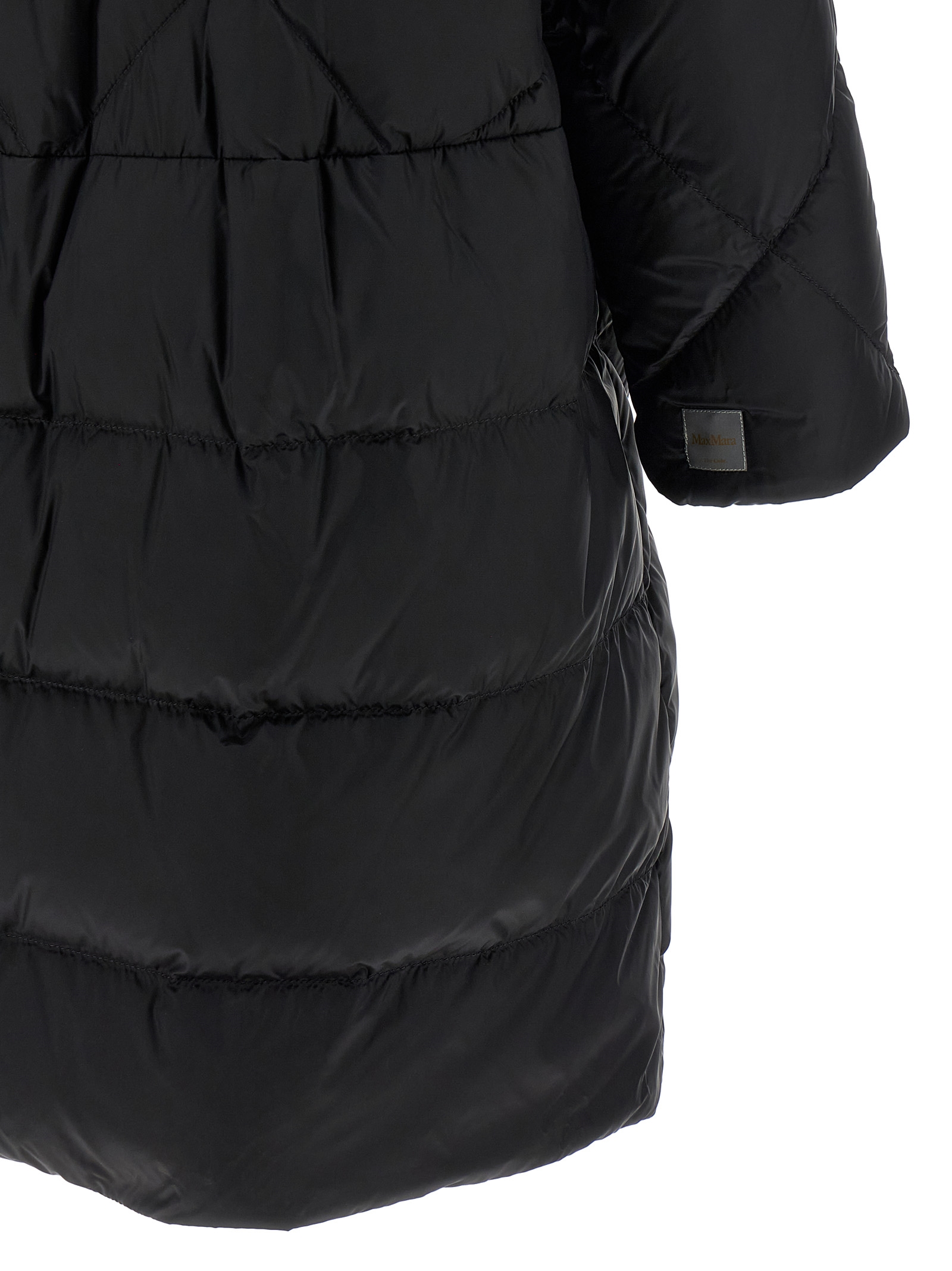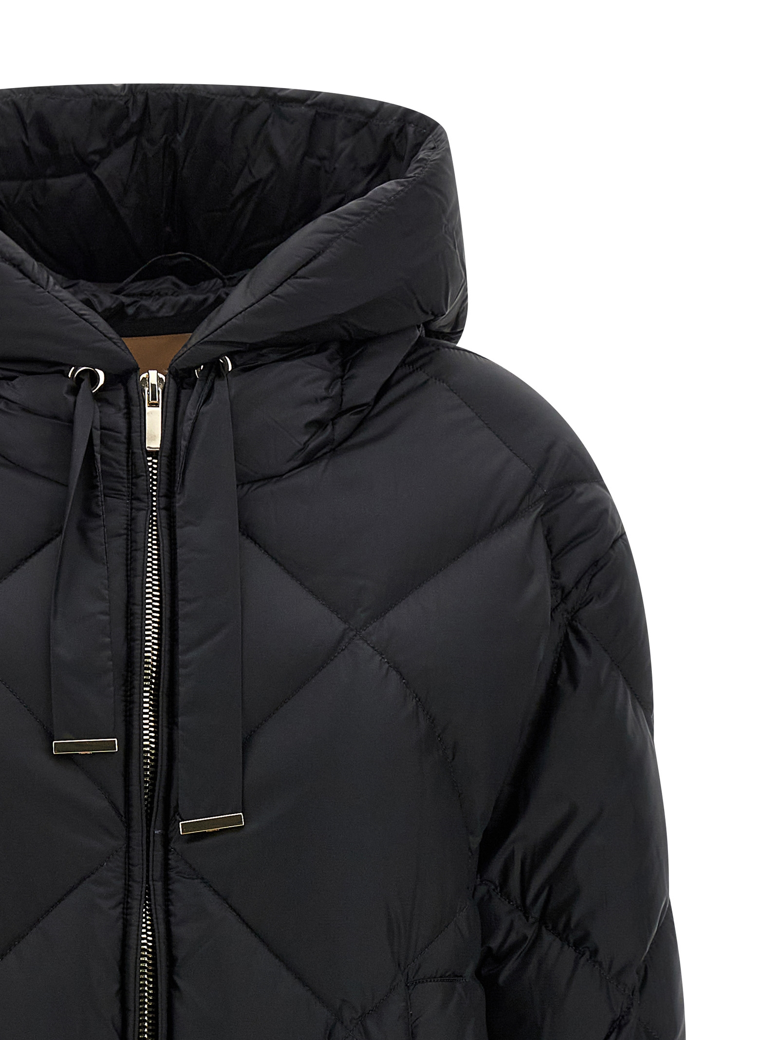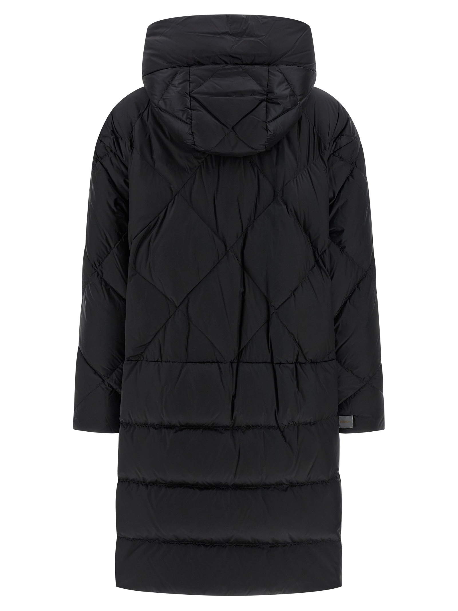 ‘Trefe’ midi down jacket in iridescent waterproof nylon canvas quilted with diamonds and goose down padding, adjustable hood, front zip closure, pockets, long sleeves.