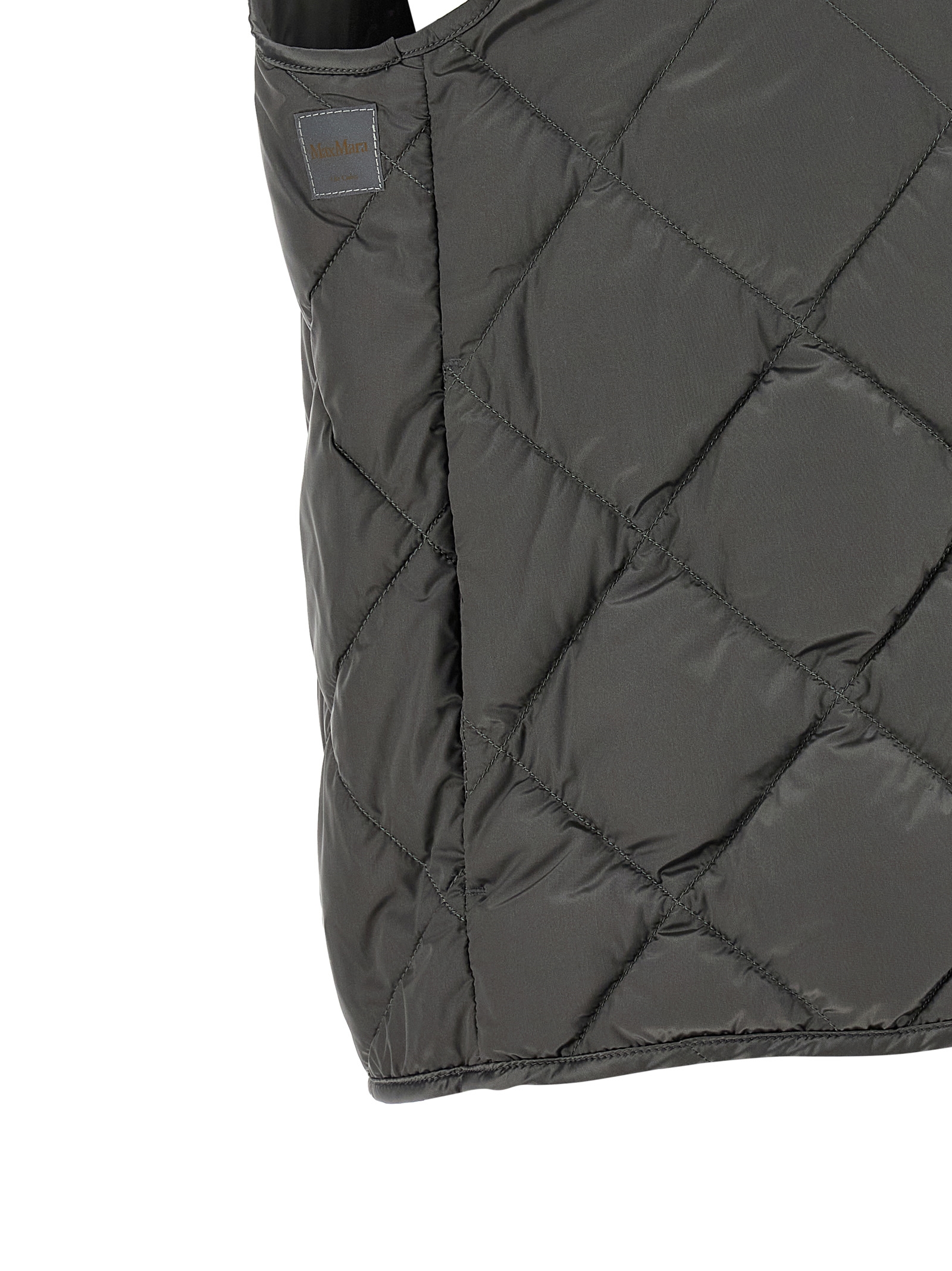 ‘Tregic’ vest in iridescent anti-drip canvas quilted with diamonds and slightly padded with goose feathers, crater neck with drawstring and jacquard logo ribbons, front zip closure, pockets.