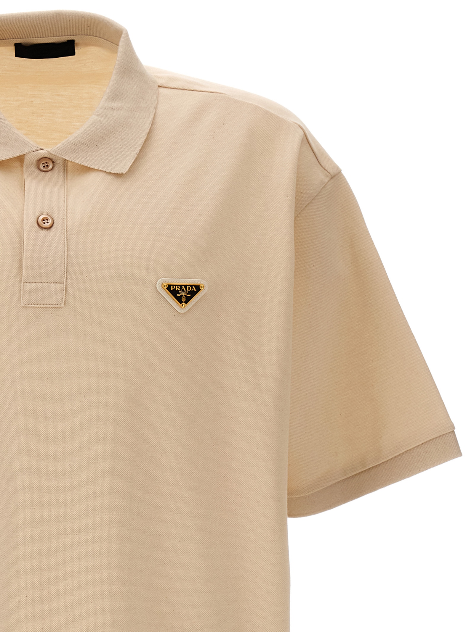 Piqué cotton polo shirt with triangle enameled metal logo and short sleeves.
