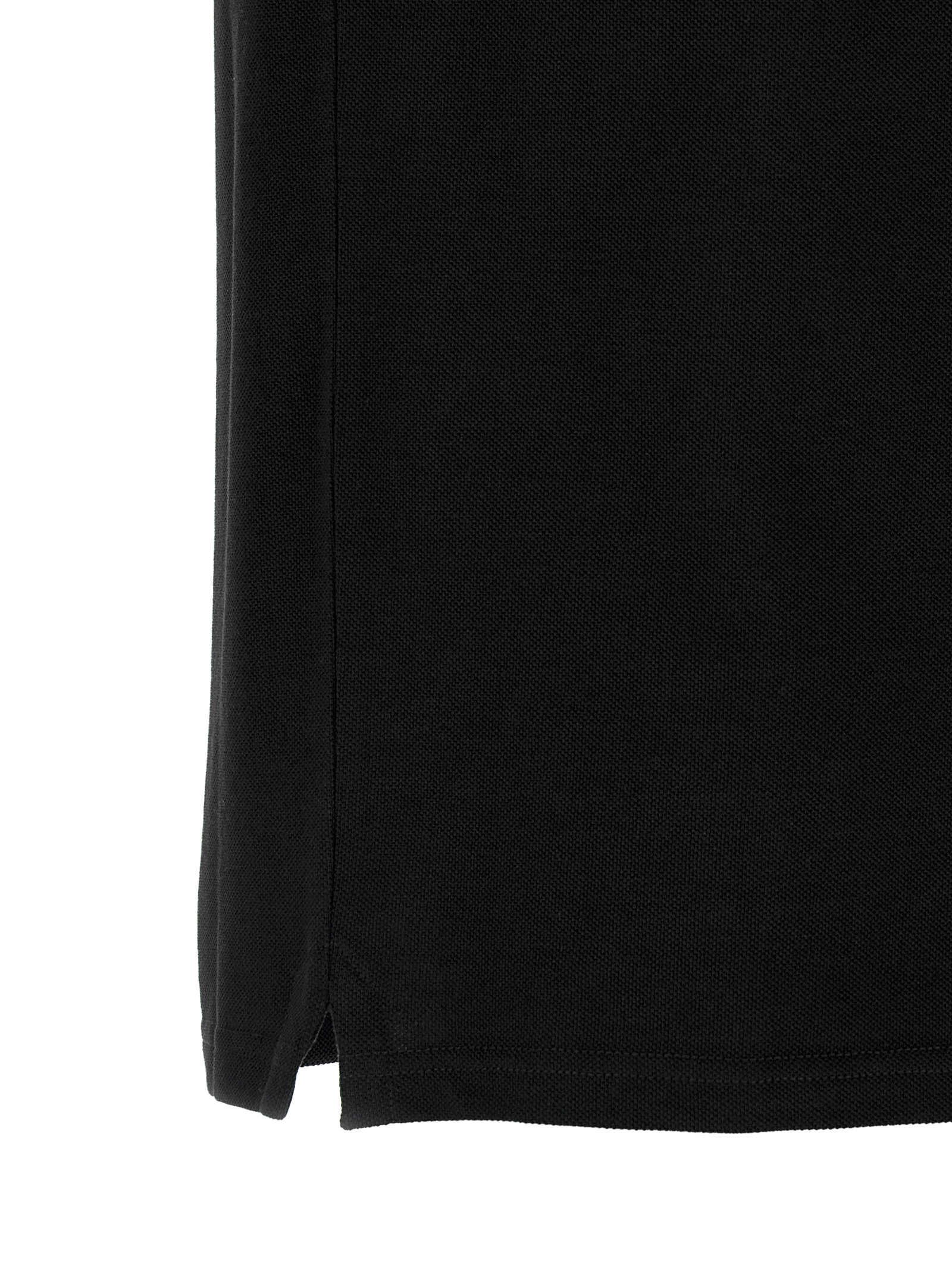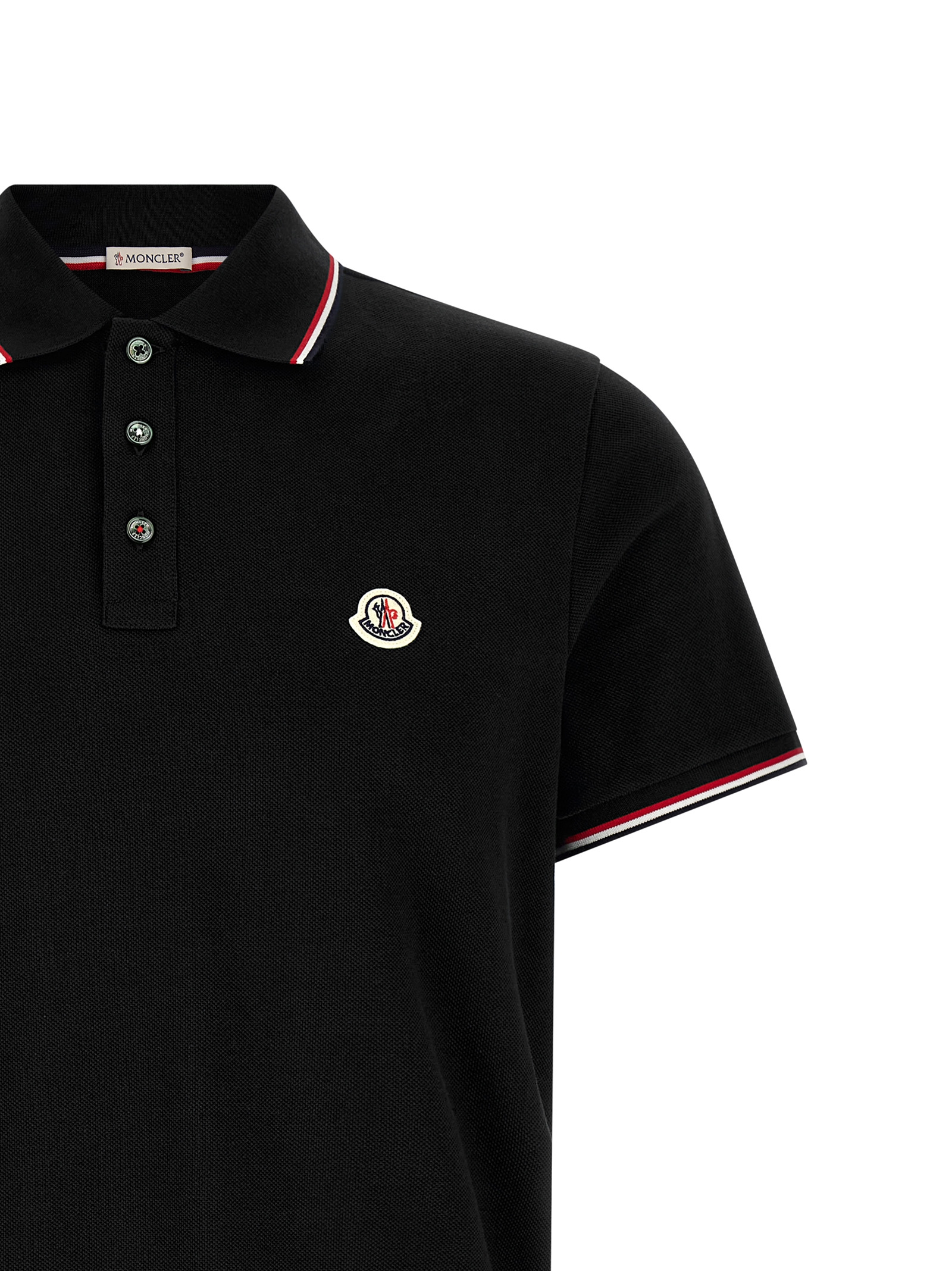 Cotton piquet polo shirt with tricolor details, front felt logo patch, collar and buttons, short cuffed sleeves, side slits.