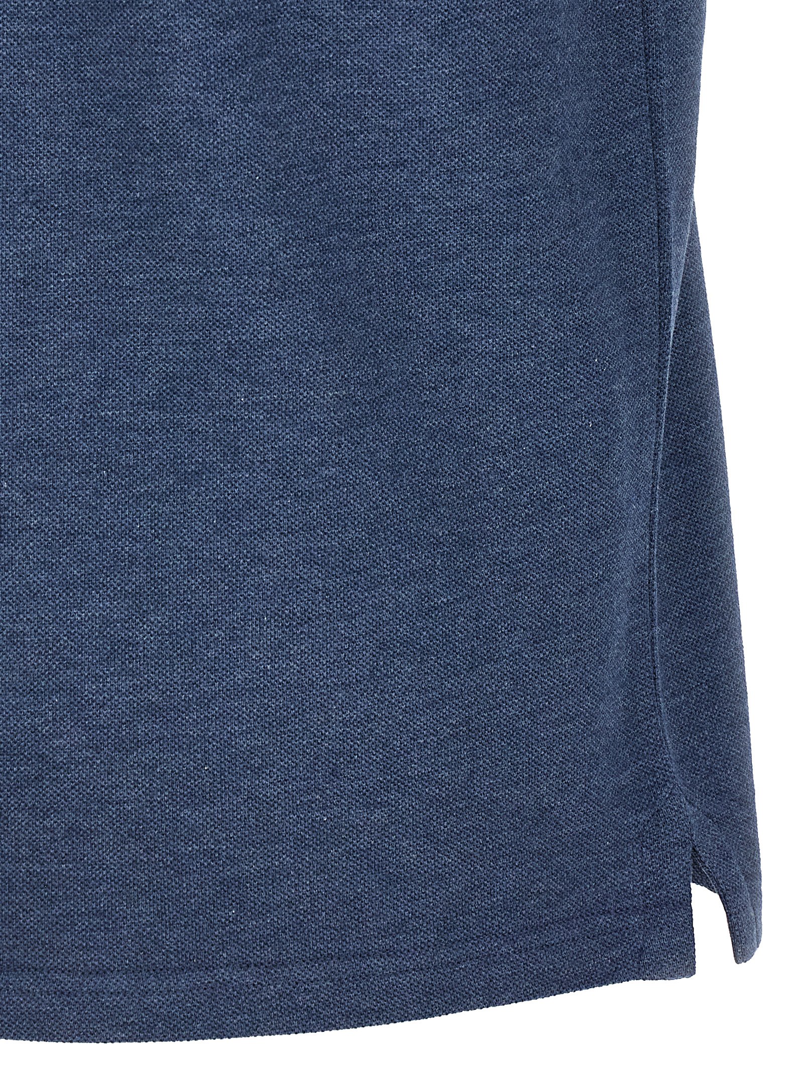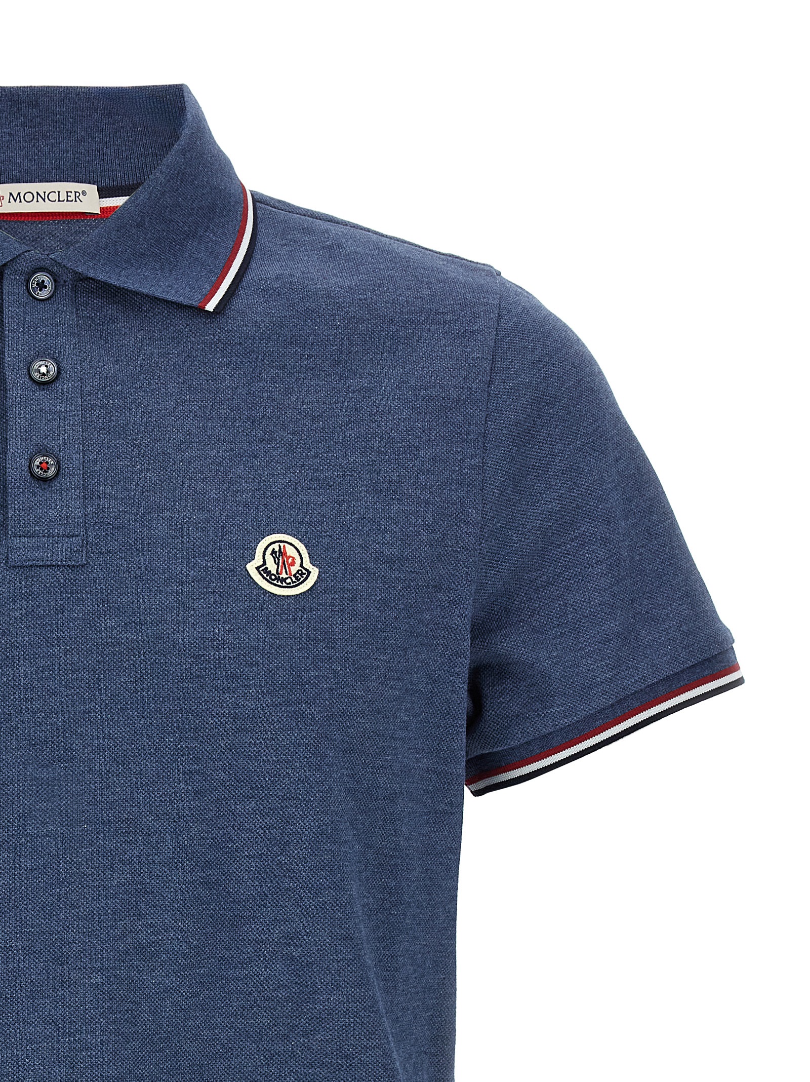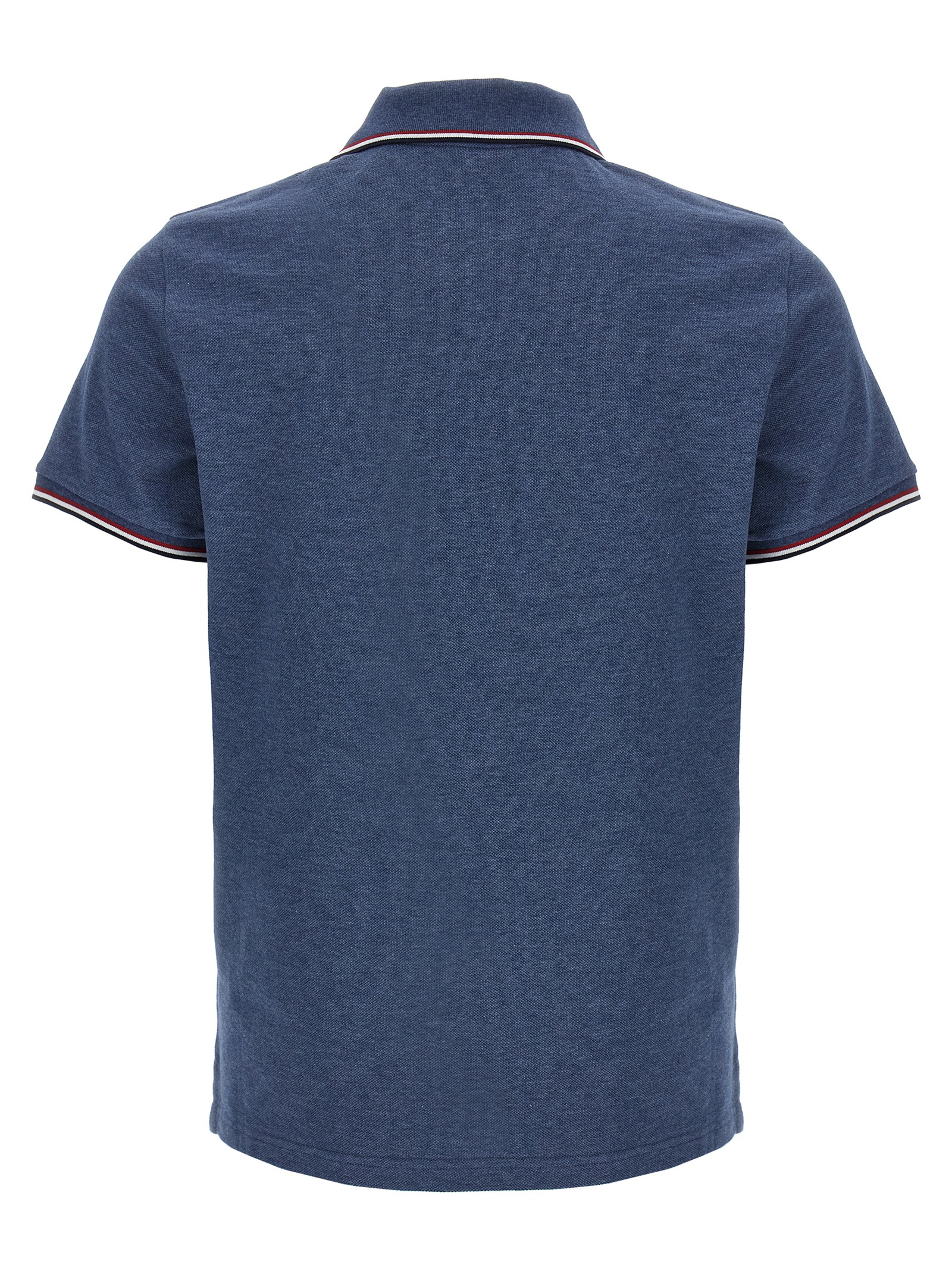 Mélange cotton piquet polo shirt with tricolor details, front felt logo patch, collar and buttons, short cuffed sleeves, side slits.
