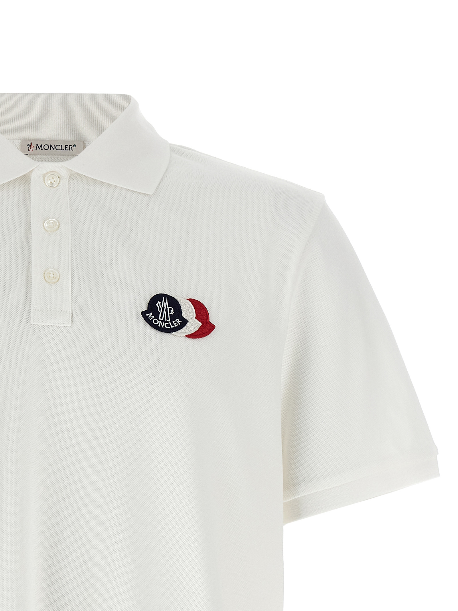 Polo shirt in cotton piquet, patch with front tricolor logo, collar and buttons, short sleeves with cuffs, side splits with tricolor trim.