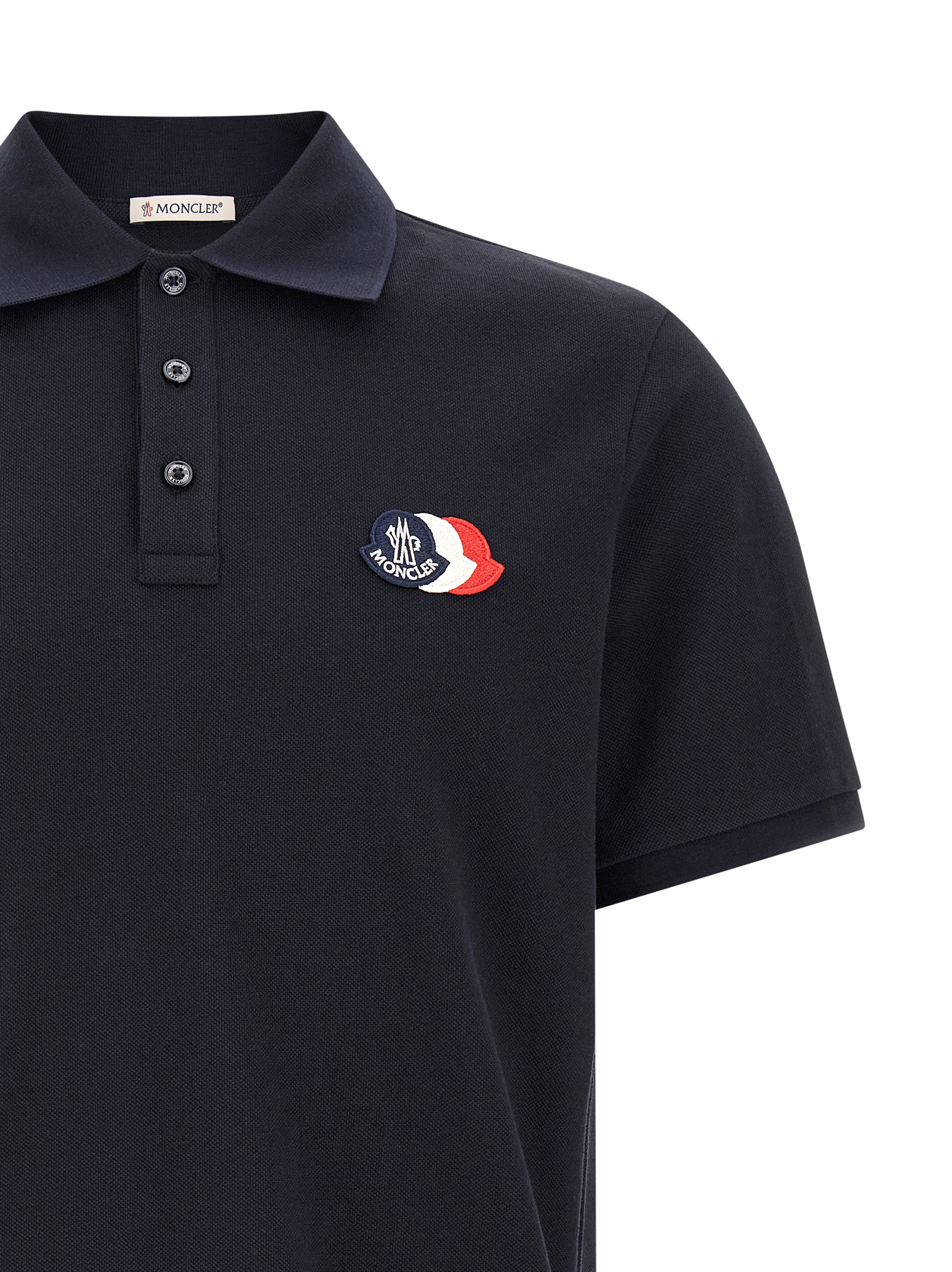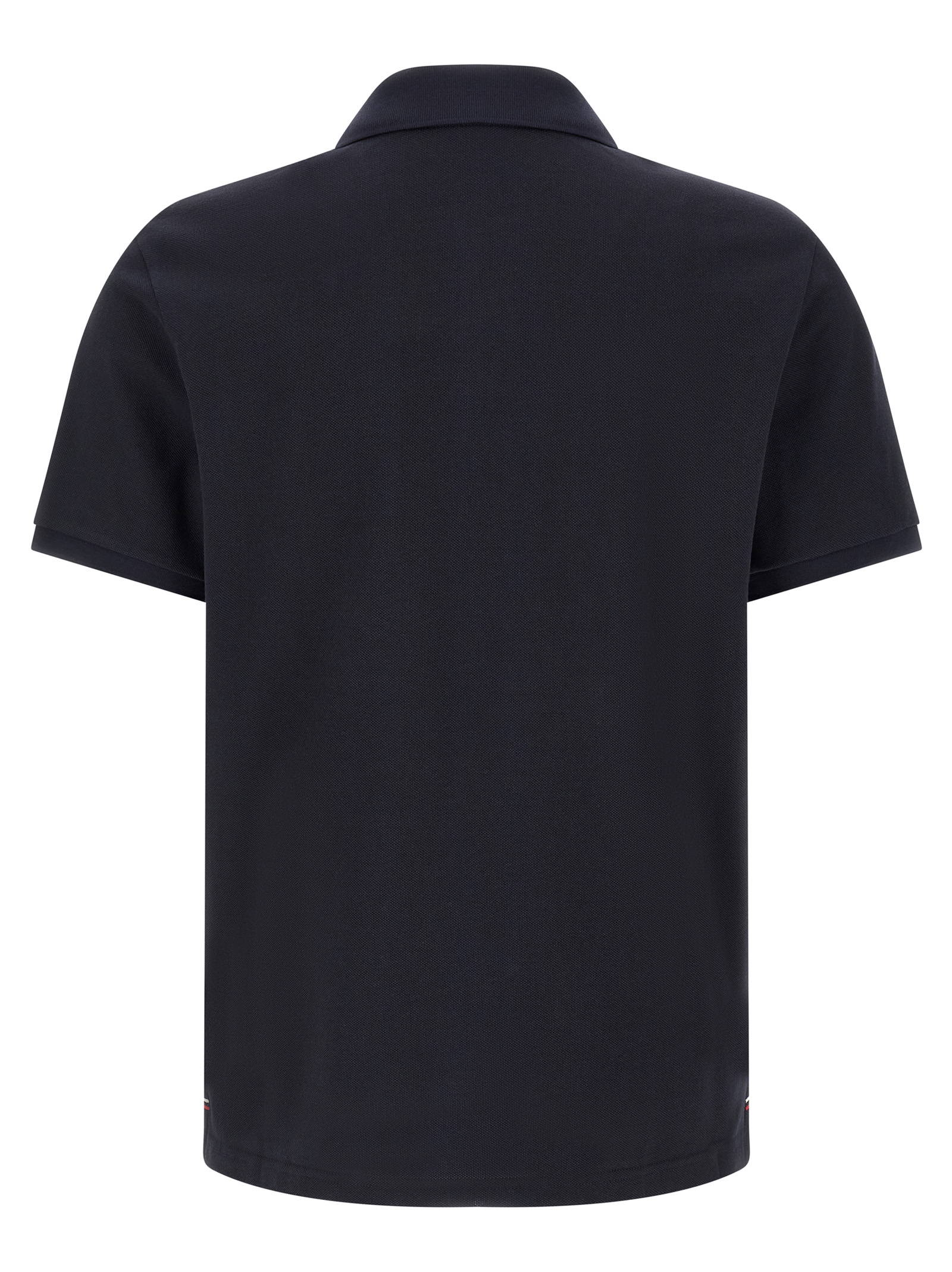 Polo shirt in cotton piquet, patch with front tricolor logo, collar and buttons, short sleeves with cuffs, side splits with tricolor trim.