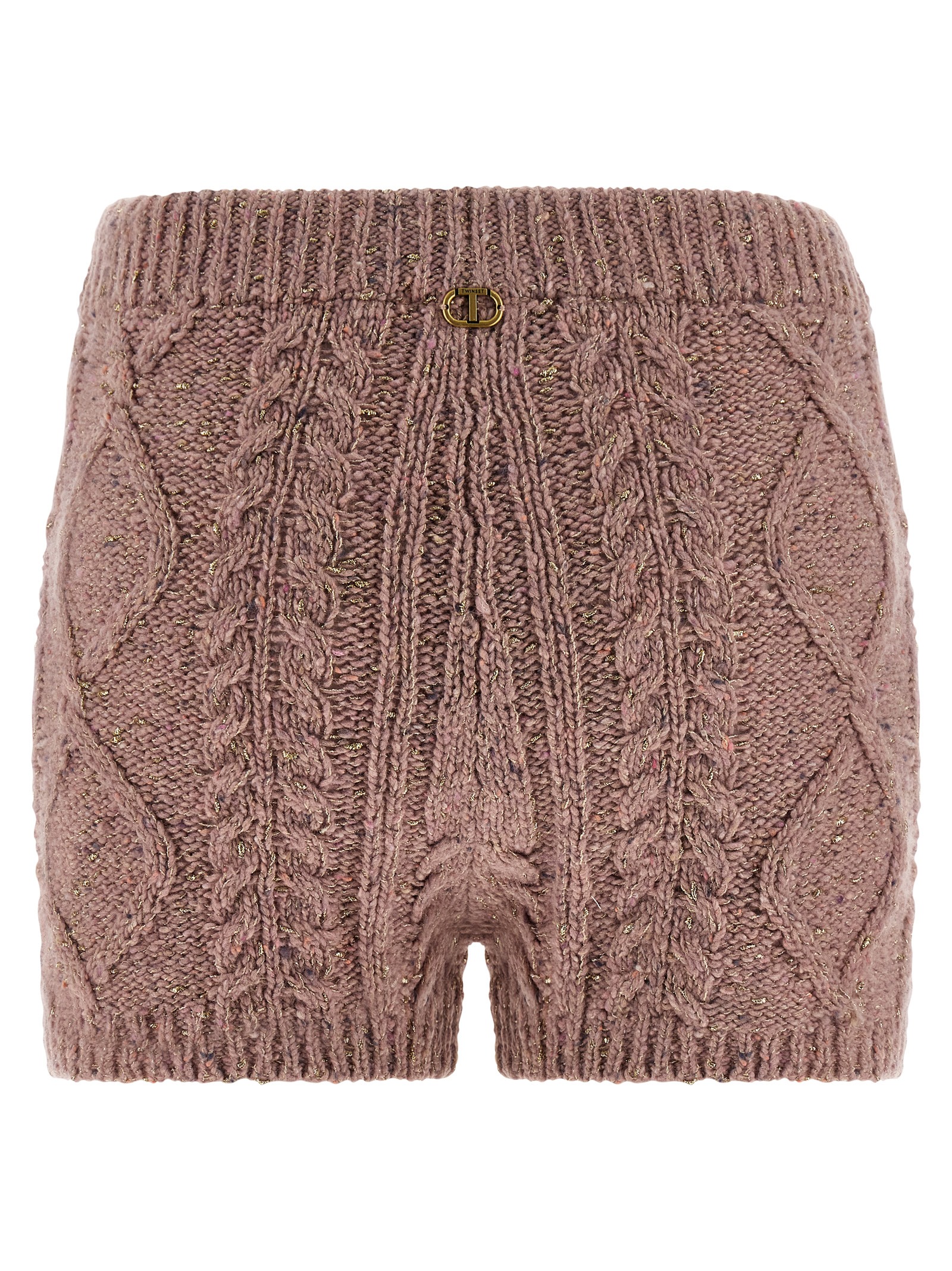 Shorts in wool blend and viscose tricot processing with metallic yarn, elastic waistband, unlined.