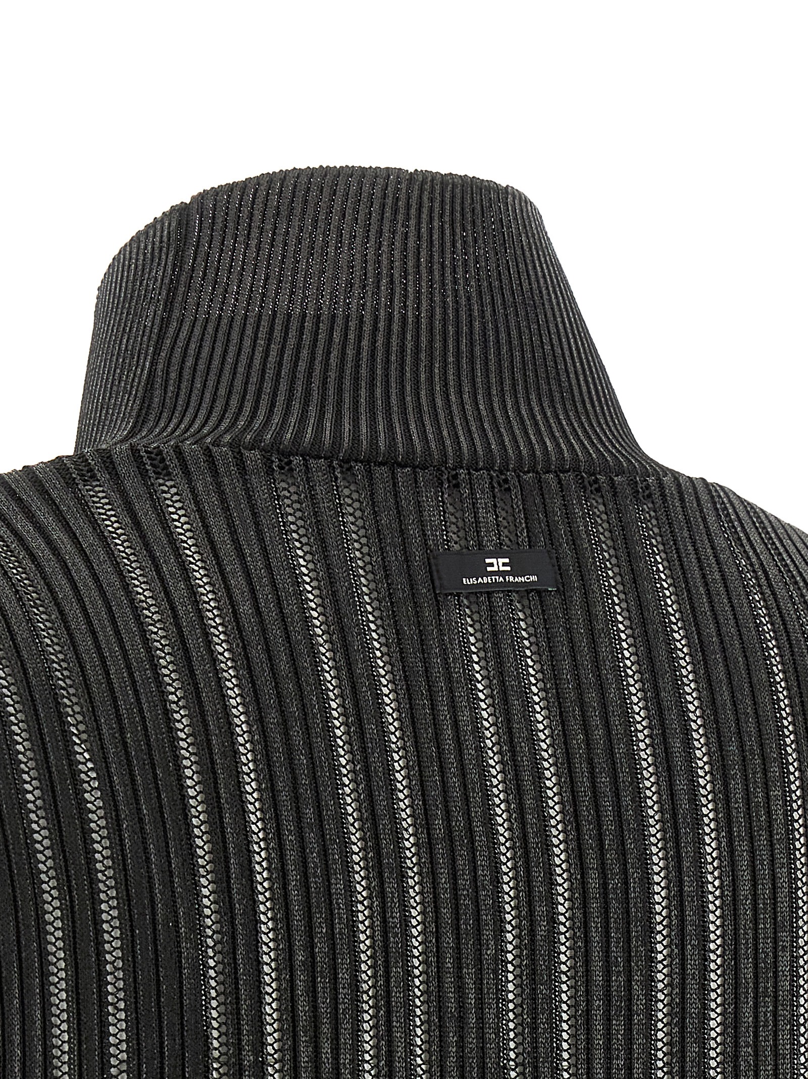 Shiny stretch fabric sweater with tricot ribbed knit I don’t see, high neck, long sleeves.