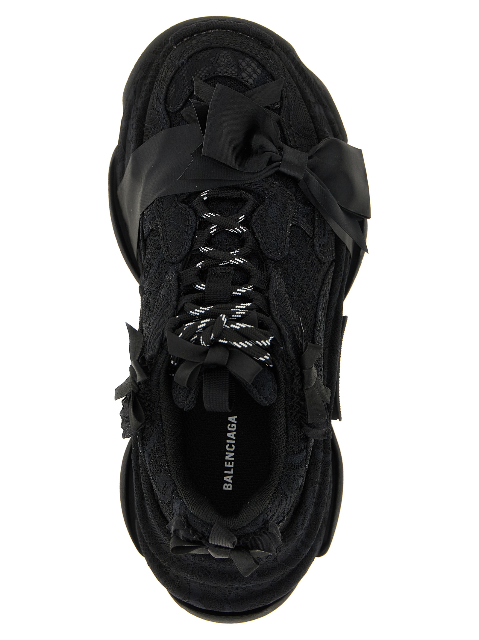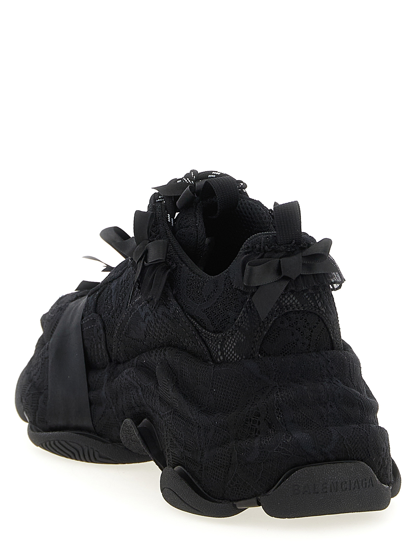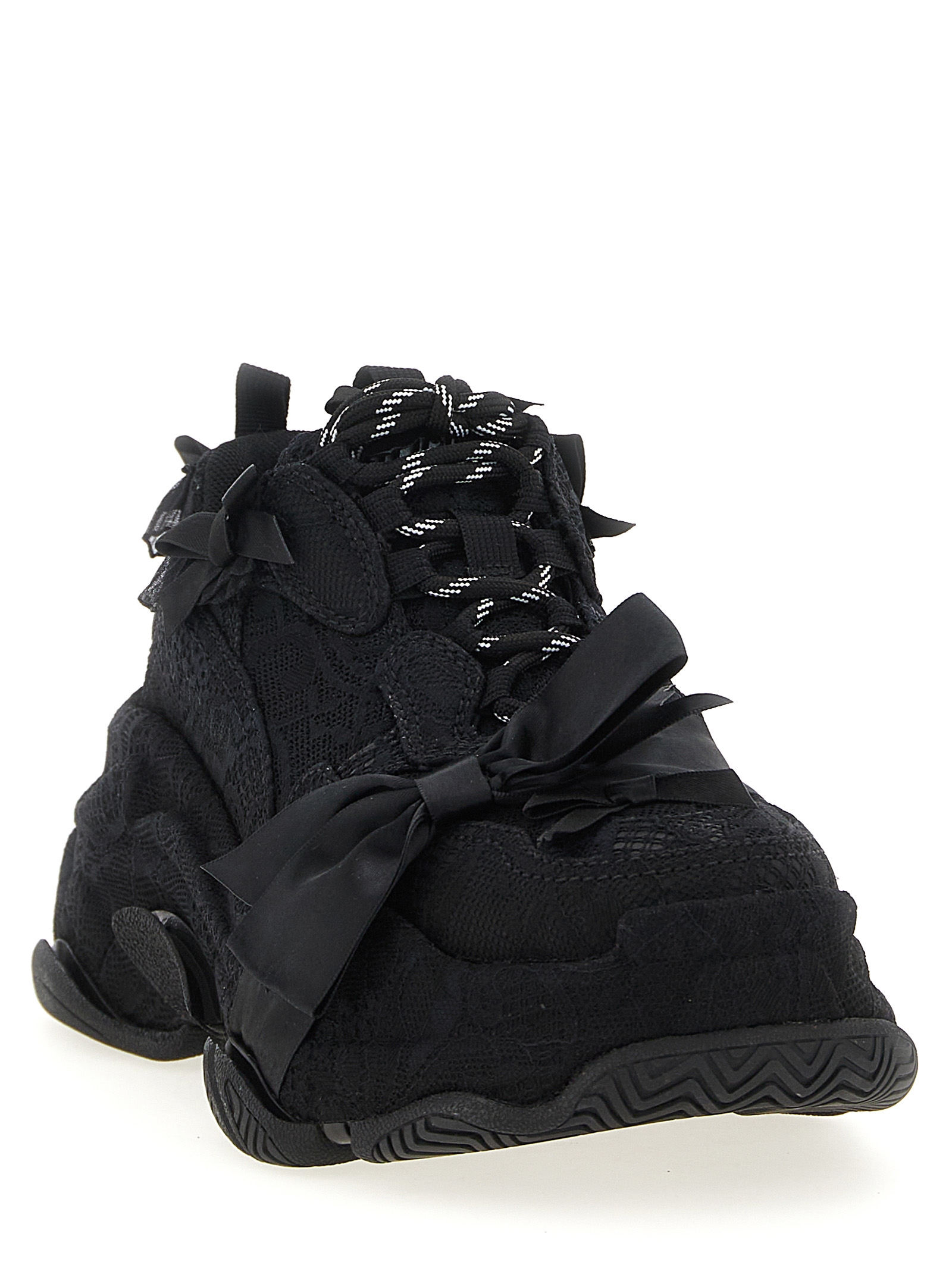 ‘Triple S’ lace sneakers with tone-on-tone ribbon appliqué, laces closure, oversized rubber sole.