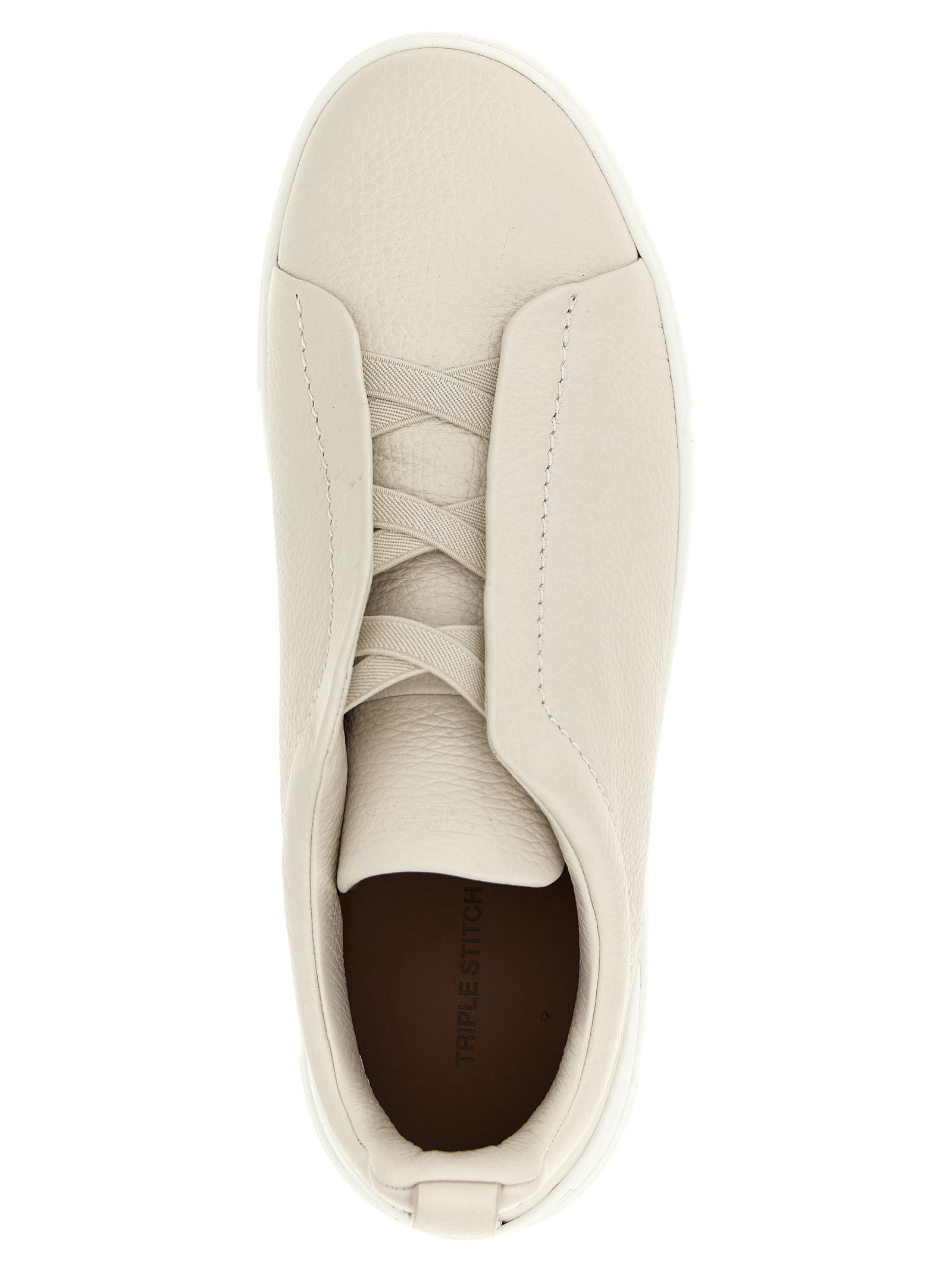 ‘Triple Stitch’ hammered leather sneakers, slip on model with elastic closure and rubber sole.