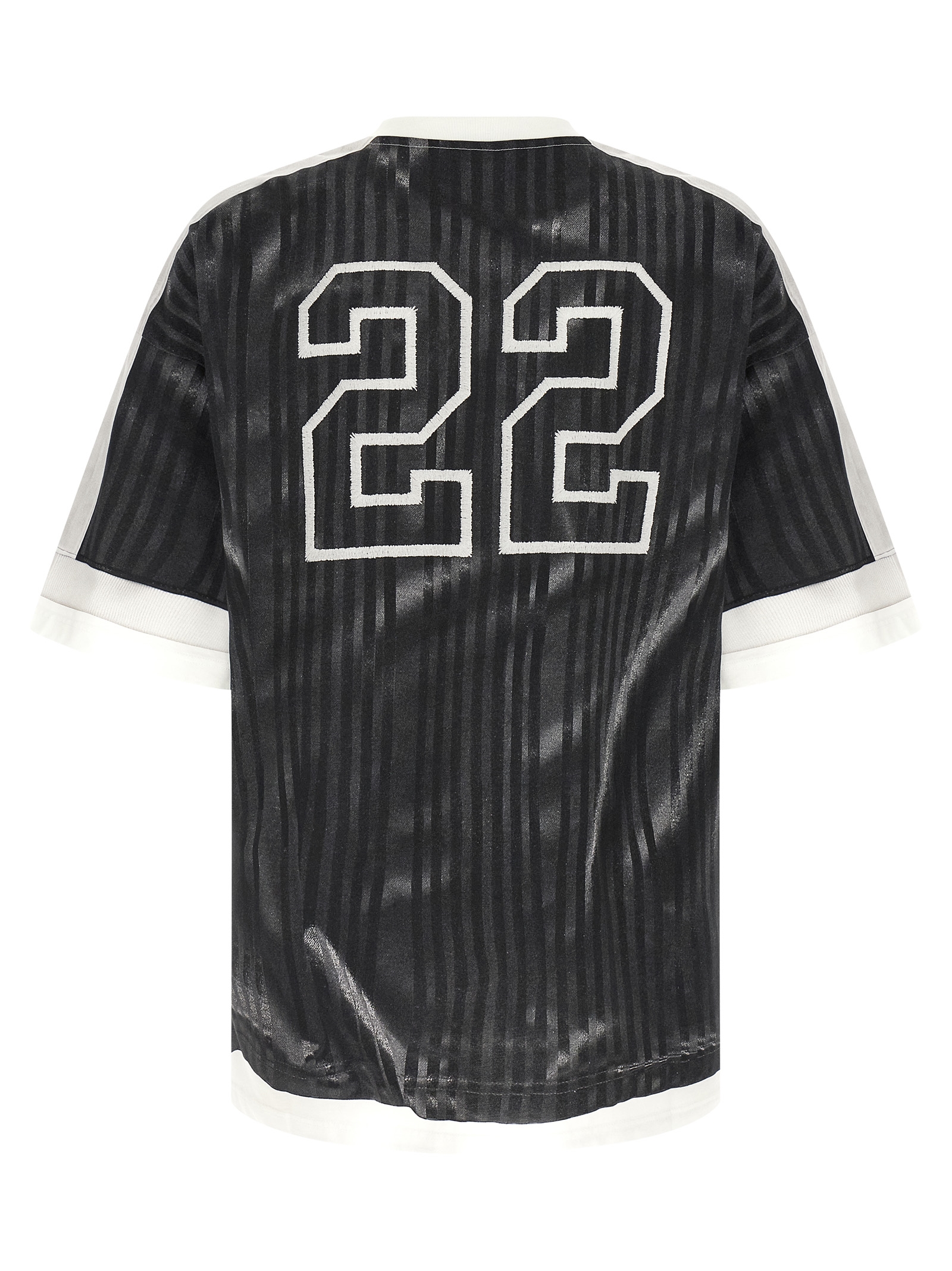 Cotton t-shirt, with all-over trompe-l’œil effect football t-shirt print, crew neck, short sleeves with dropped shoulders.