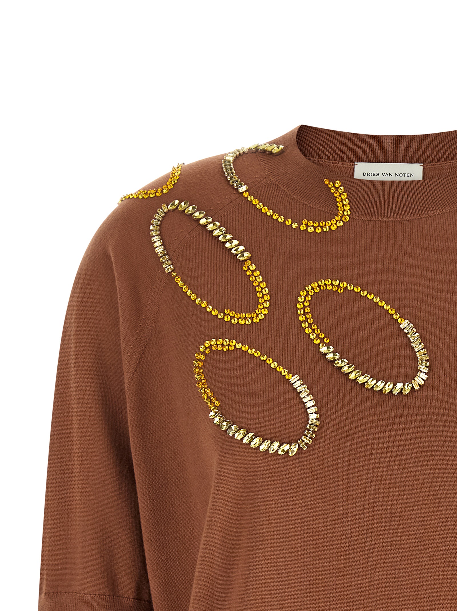 ‘Tuan’ fine wool sweater, crew neck, embroidery with ‘Oversized Ellipses’ pattern in sequins and crystals, short sleeves, ribbed trims.