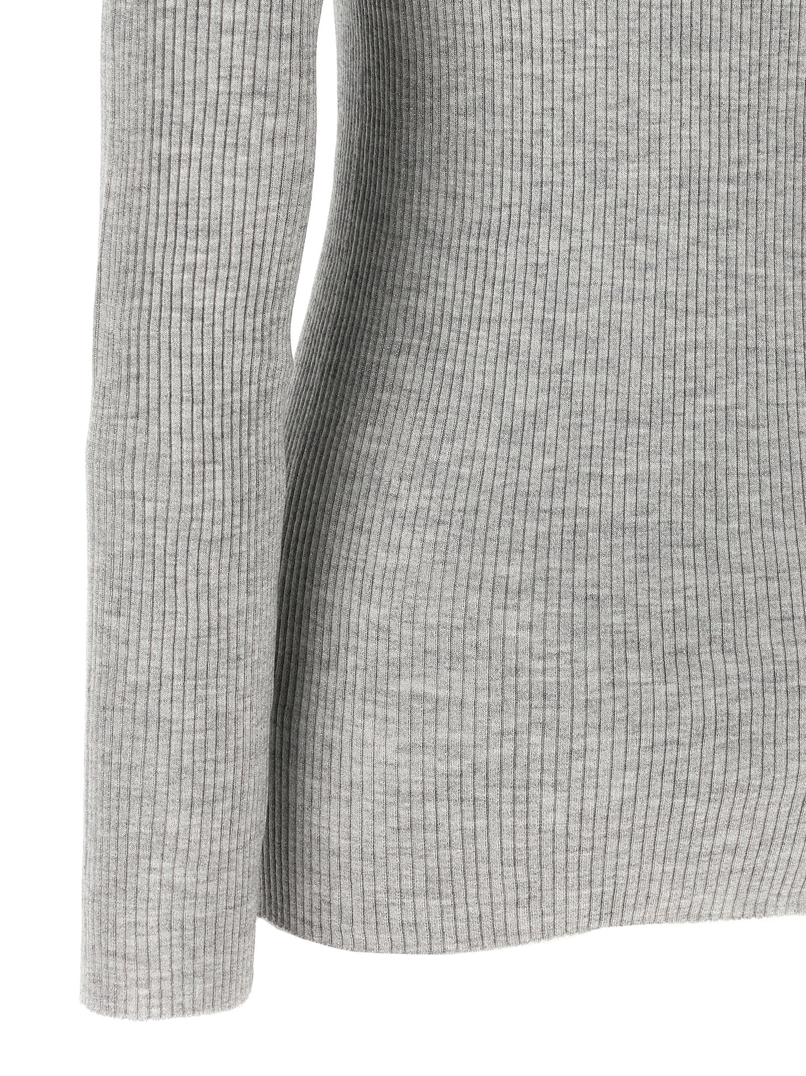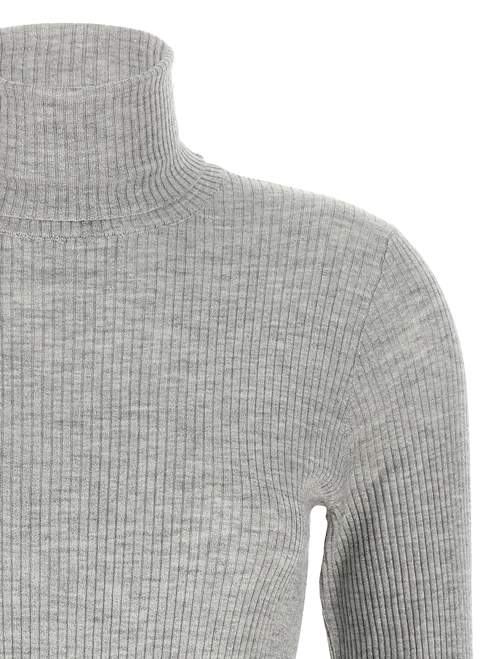 Cashmere and silk blend turtleneck sweater, ribbed stretch with lamé thread, high neck, long sleeves with raw cut effect on the hem.