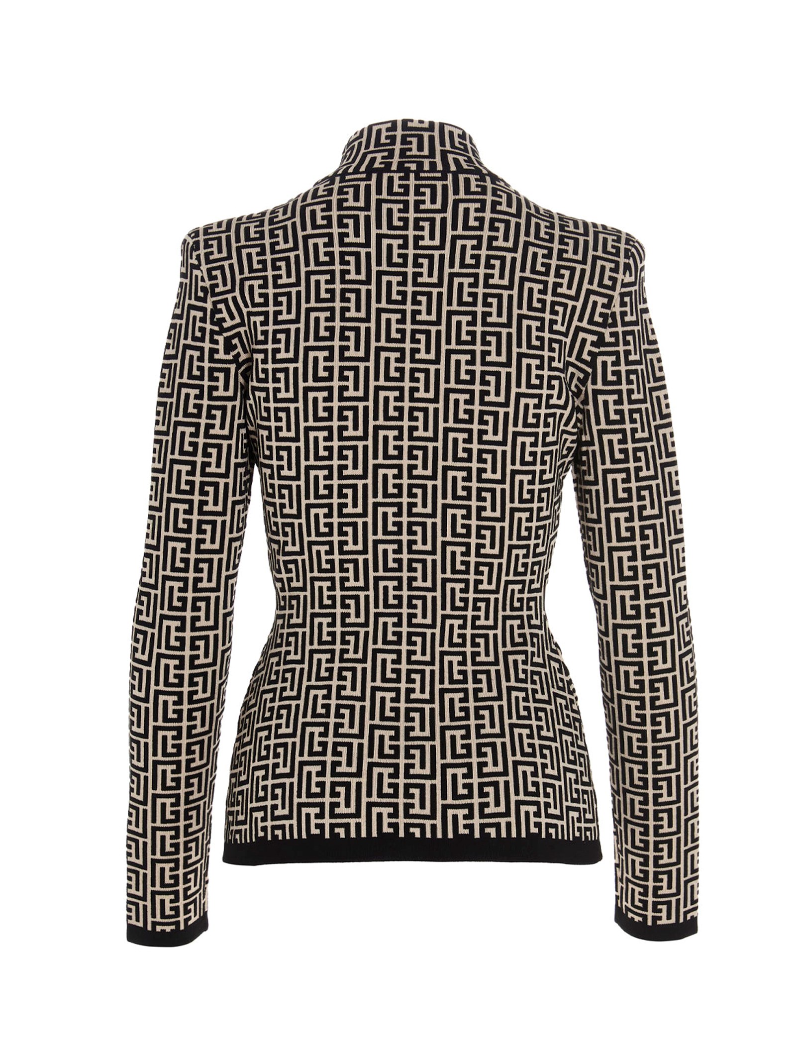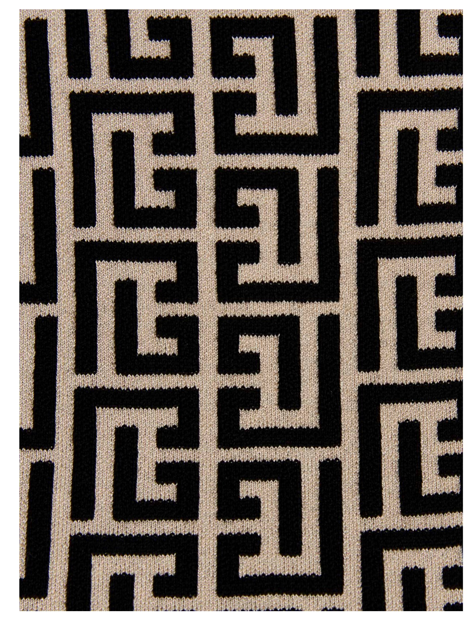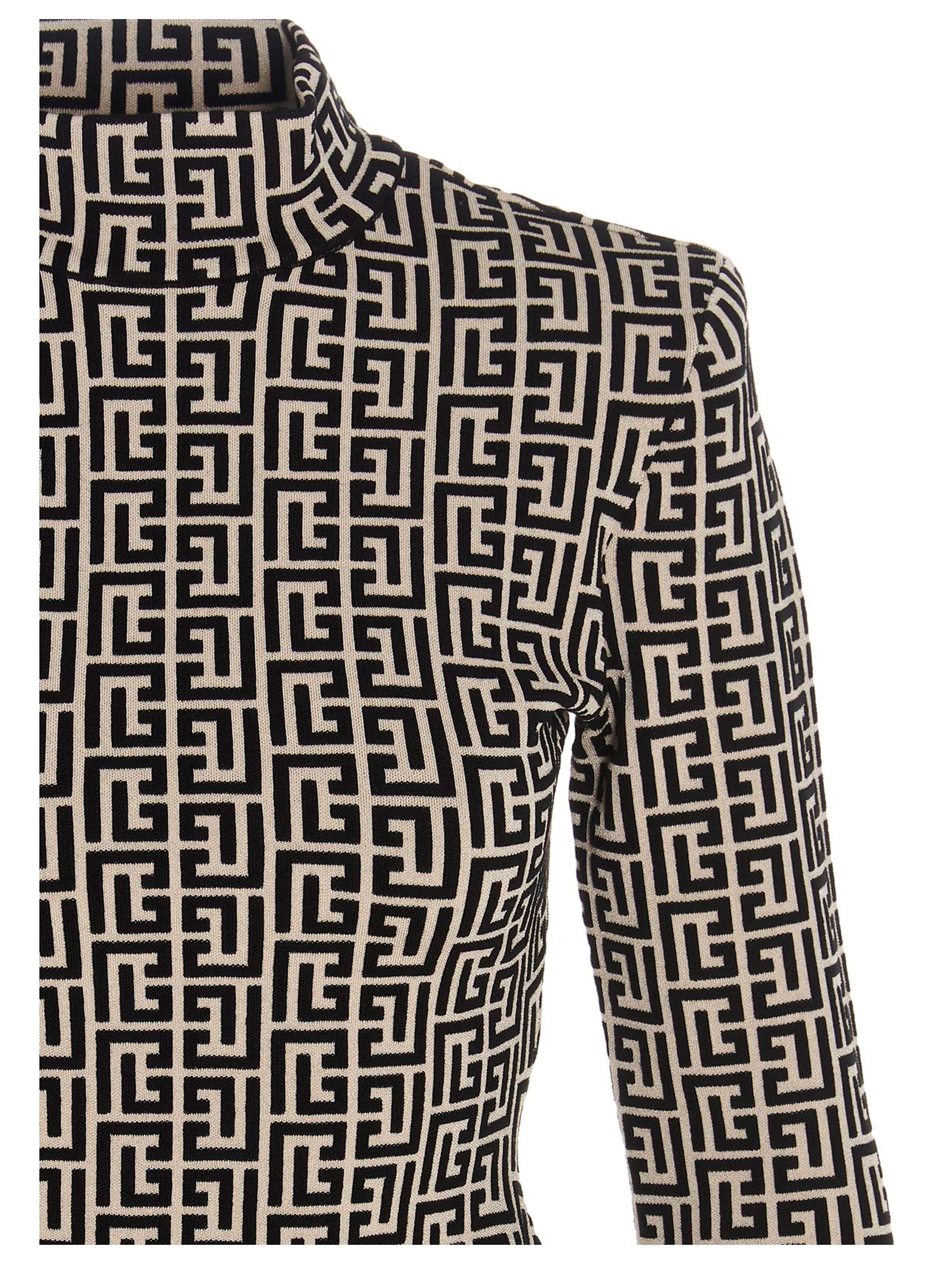 Balmain turtleneck sweater in a wool and viscose blend featuring a fret detailing and shoulder pads.