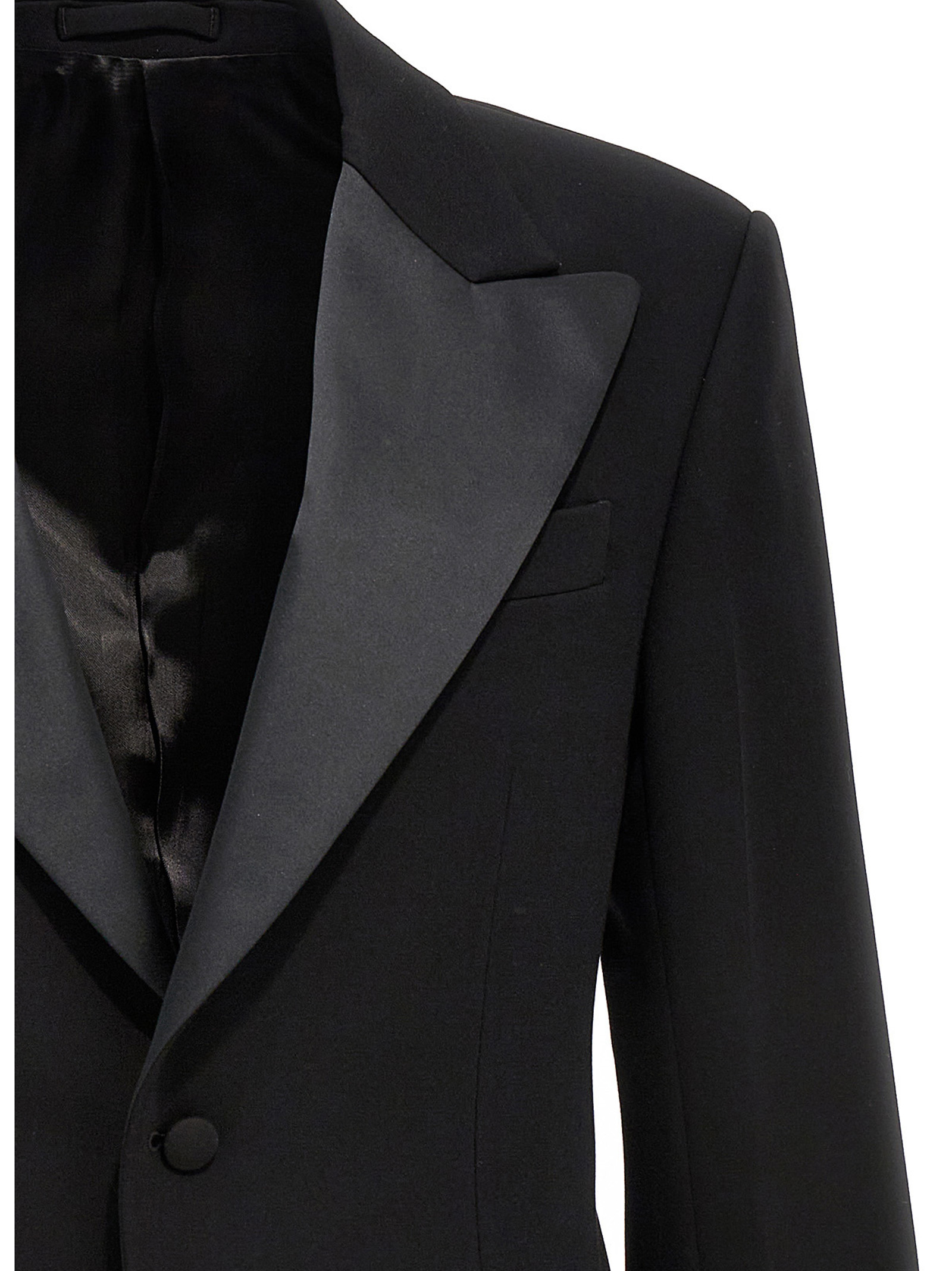 Drop 7 tuxedo single breast sablè wool blazer with wide satin lapels. With back central split and sleeve splits. Lined model.