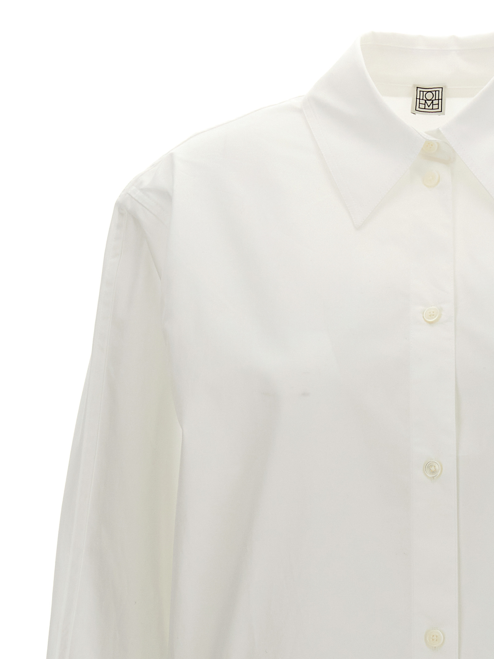 Tuxedo cotton shirt with button closure, long cuffed sleeves.