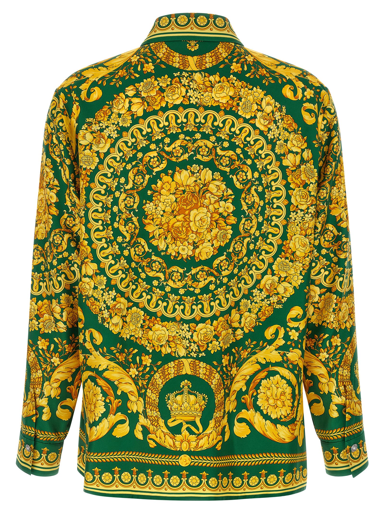 All-over ‘Barocco’ print silk twill shirt, front closure with concealed buttons, long cuffed sleeves.