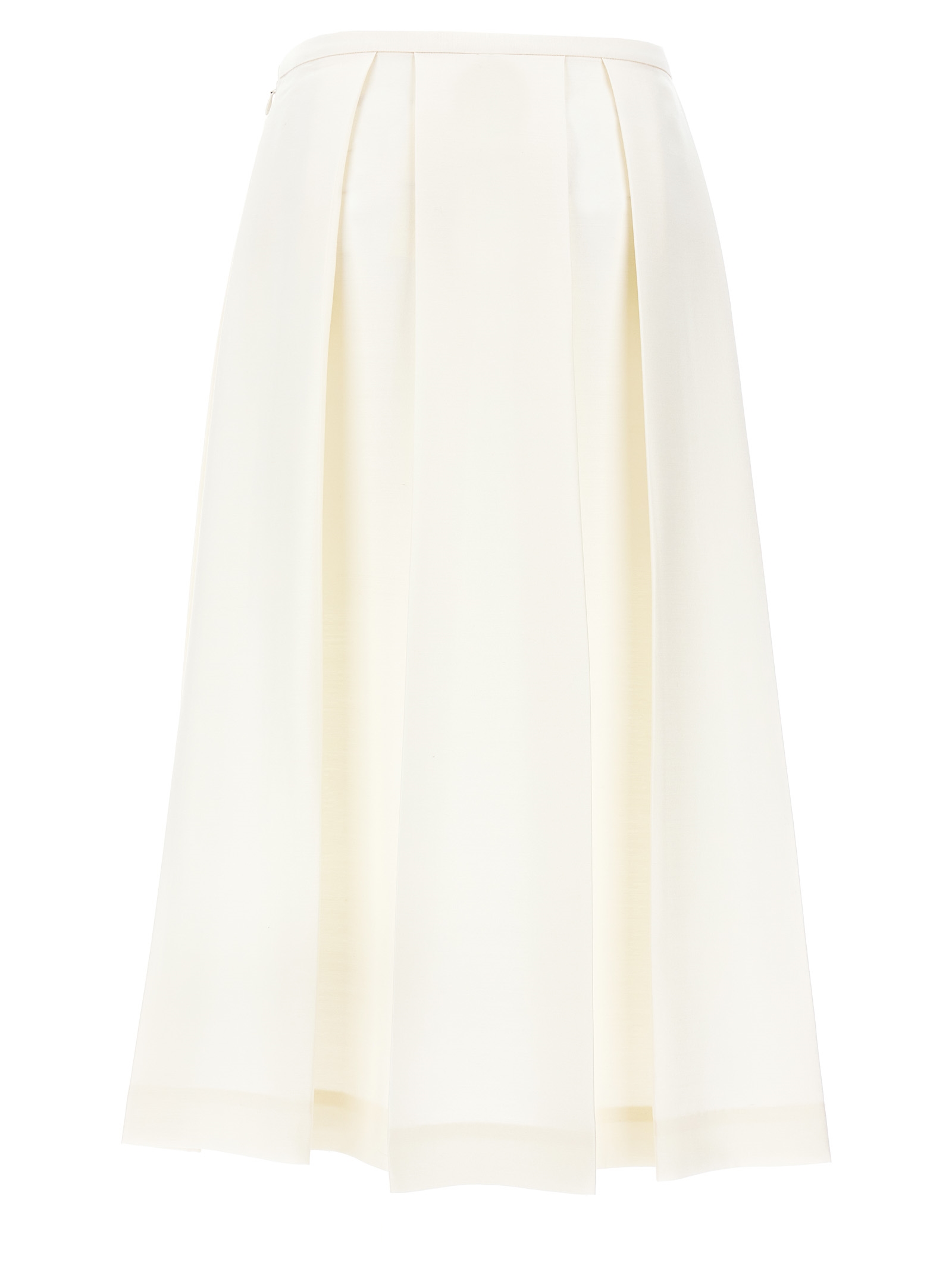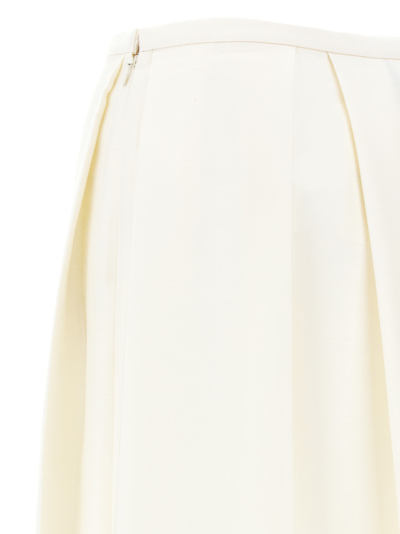 Midi ‘Twinflower’ pleated skirt, belt at the waist, side hook and zip closure.