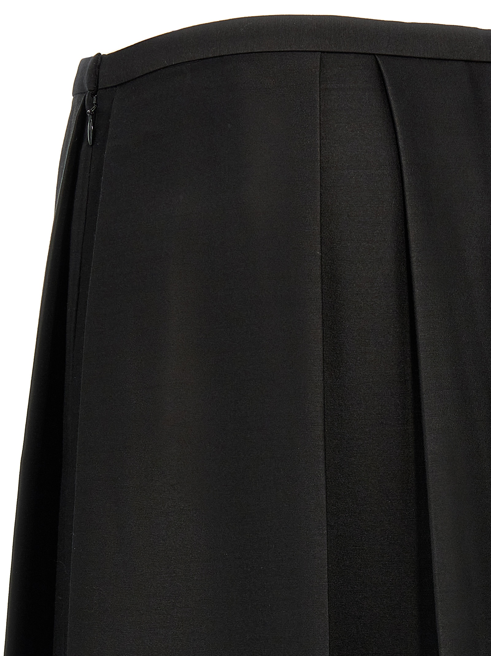Midi ‘Twinflower’ pleated skirt, belt at the waist, side hook and zip closure.