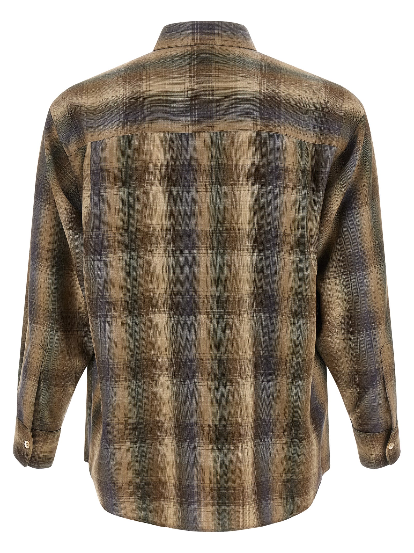 Super 120 ultra-fine combed wool shirt with check pattern, front button closure, breast pocket, long sleeves with cuffs and dropped shoulders.