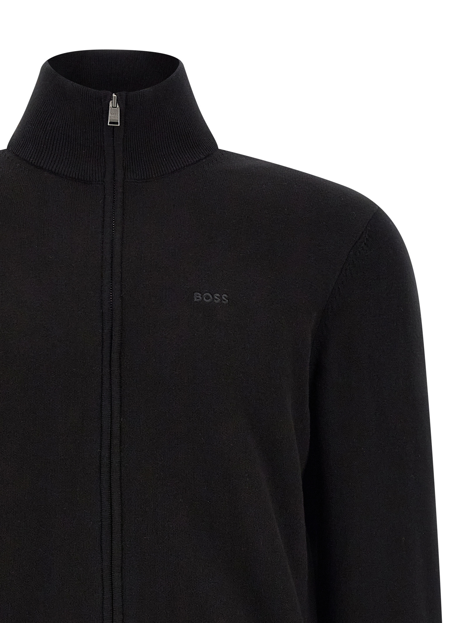 ‘Upalano’ cotton knit cardigan with tone-on-tone logo embroidery and front zip closure, high neck, pockets, long sleeves with cuffs and dropped shoulders, band on the hem.