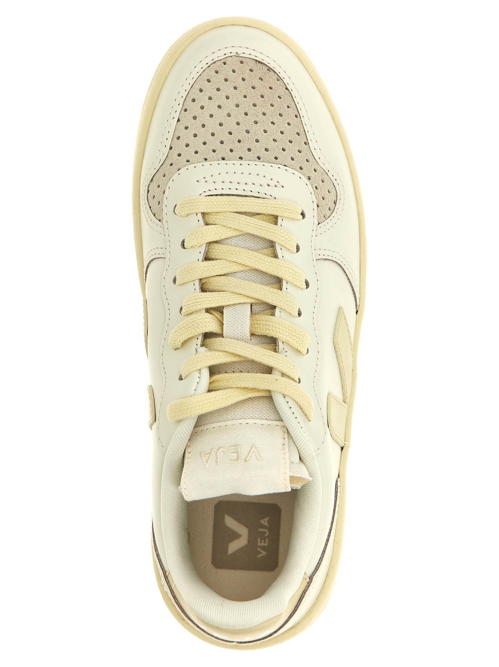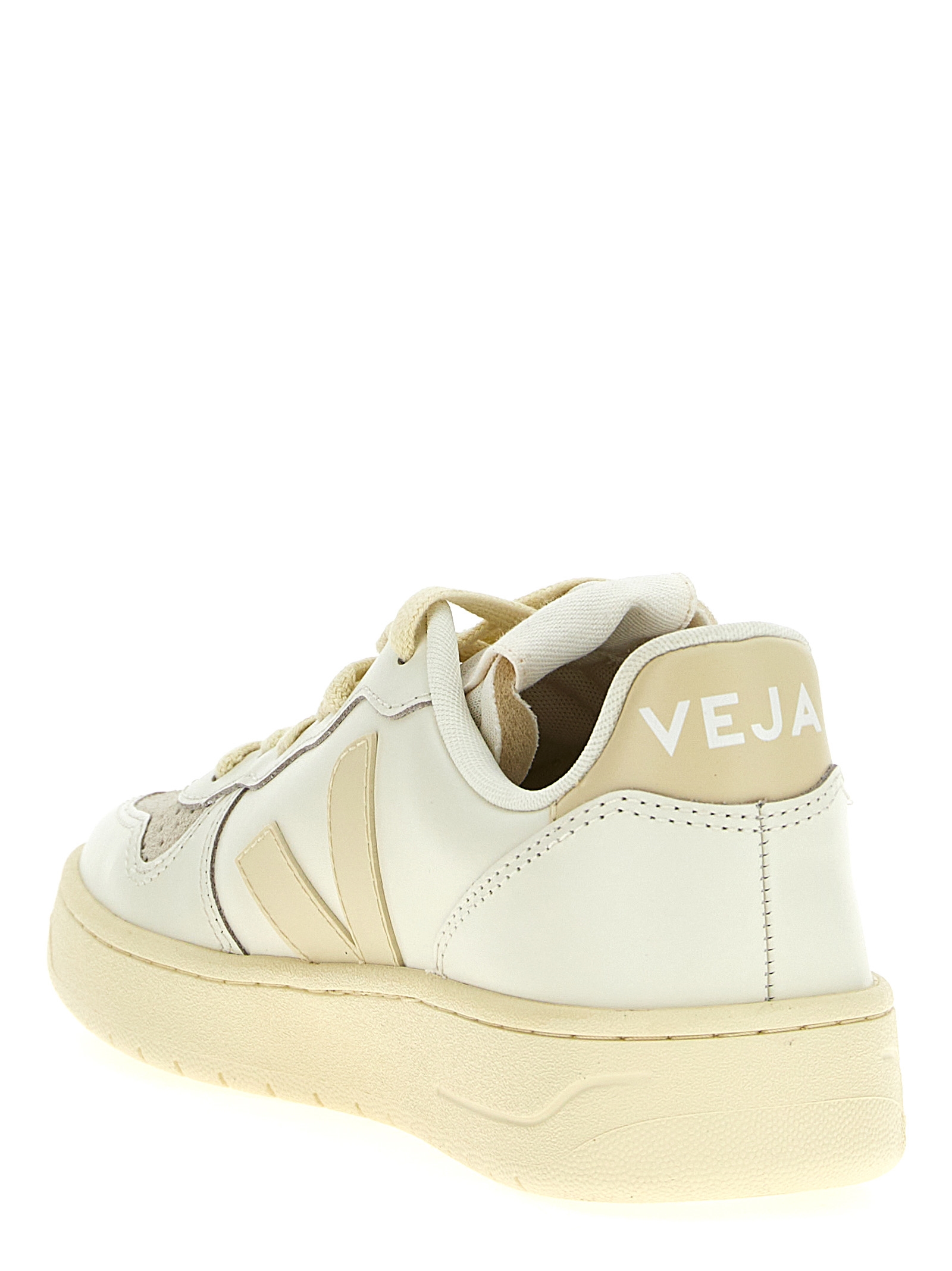‘V-10’ leather and suede sneakers with contrast heel and logo, lace-up closure and rubber sole.