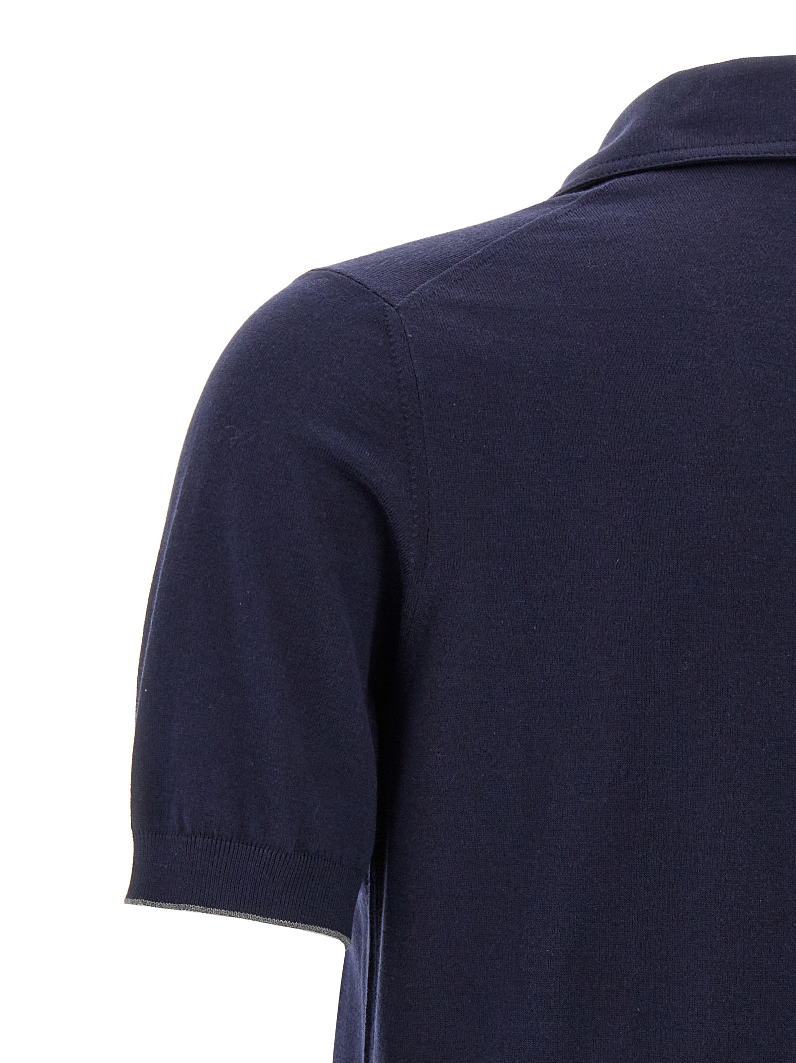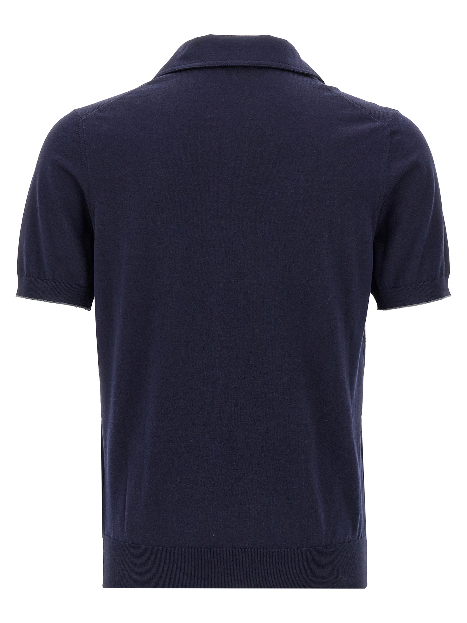 Cotton knit polo shirt, collar, V-neck with one button, short sleeves.