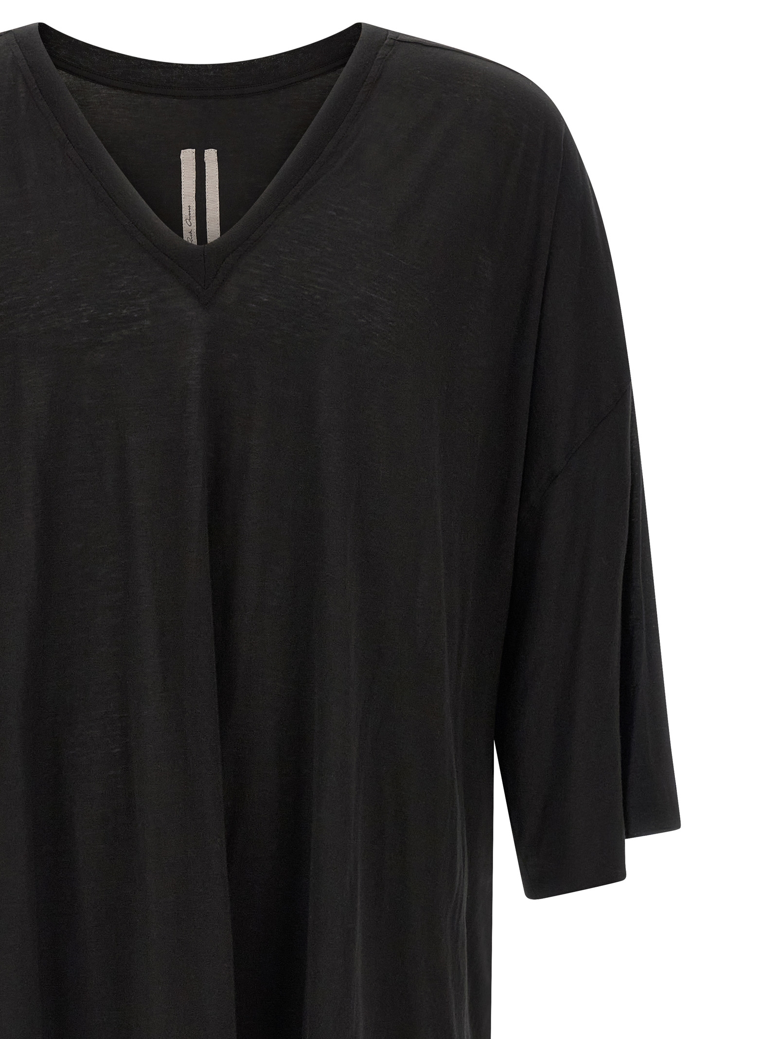 ‘V Tommy T’ garment-dyed semi-transparent cotton gauze jersey t-shirt, wide V-neck, short sleeves with dropped shoulders, raw cut hem.