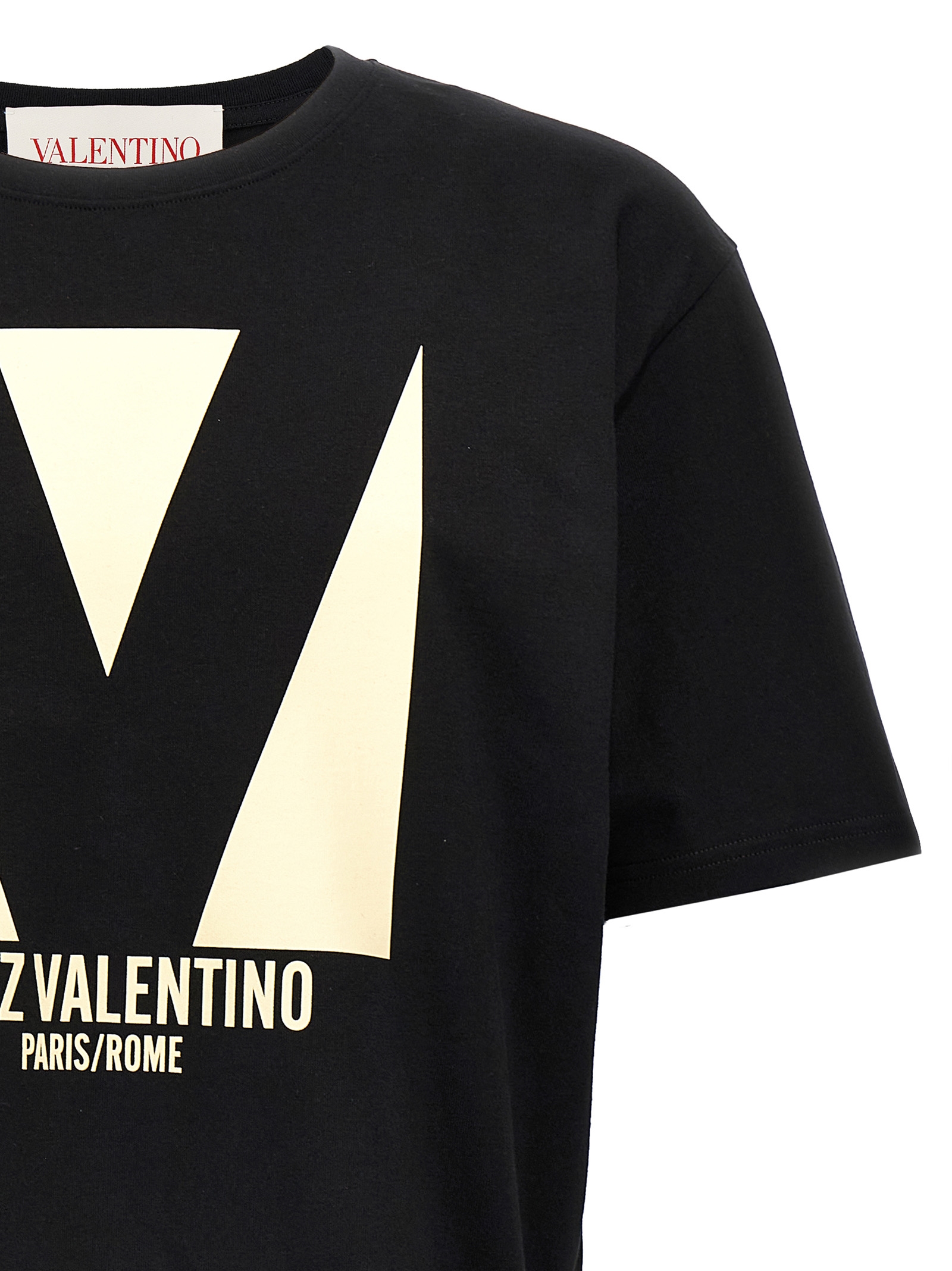 Cotton jersey T-shirt with front ‘Chez Valentino’ print, crew neck, short sleeves.