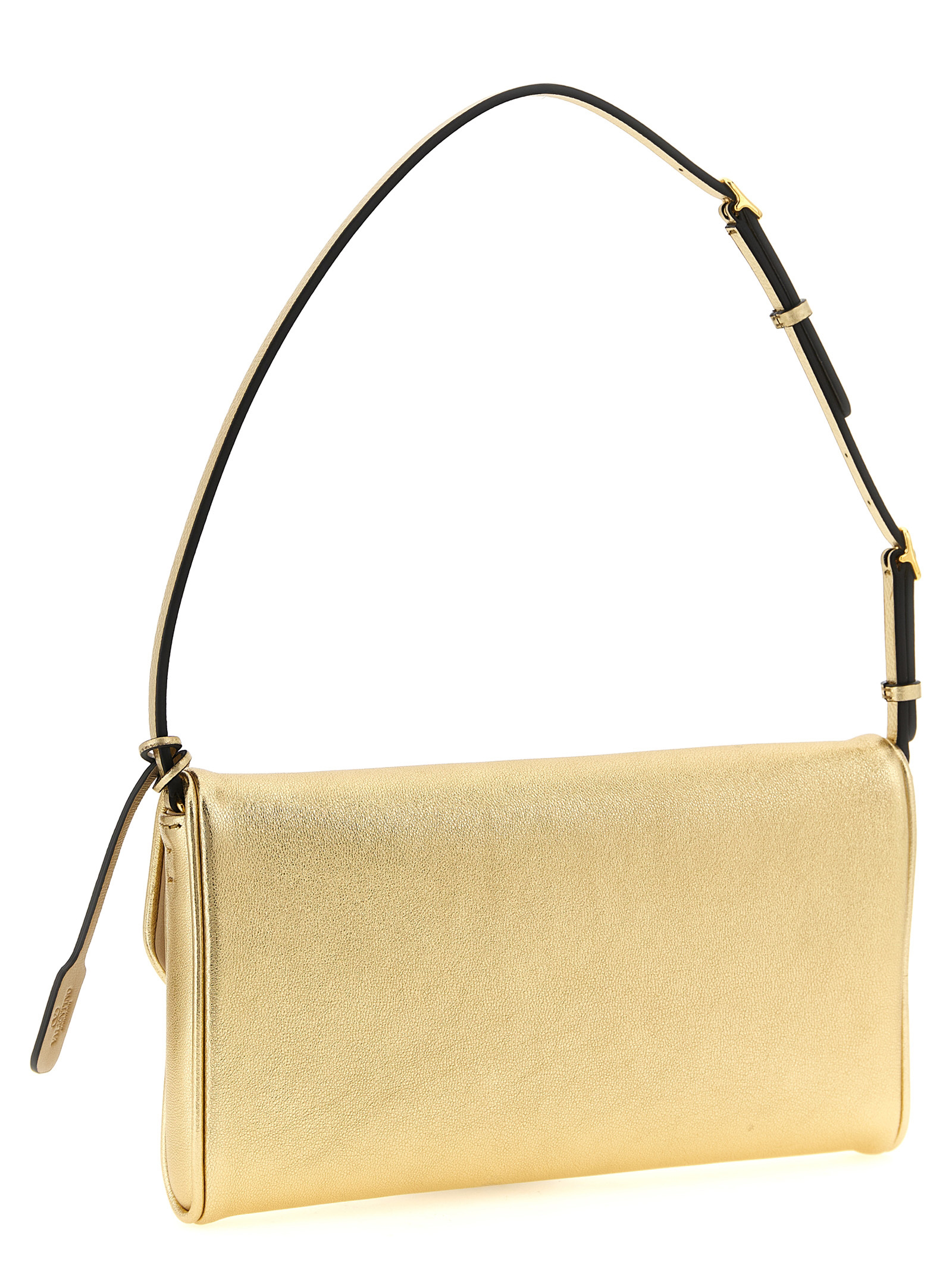 Small ‘DeVain’ shoulder bag in laminated nappa leather, magnetic flap closure with cut-out antique effect metal ‘VLogo Signature’ detail, adjustable laminated garnet calf leather handle, nappa lining, one inner pocket.