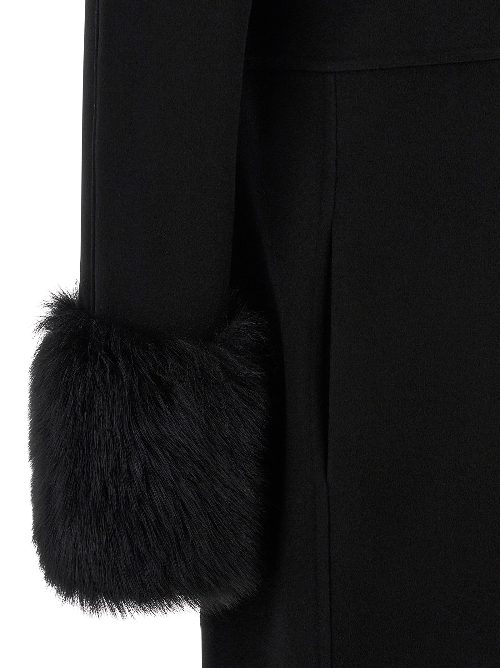 Compact Drap virgin wool and cashmere coat with shearling inserts, double-breasted style with front soutache button closure, high neck, pockets, long cuffed sleeves, lining, belt.