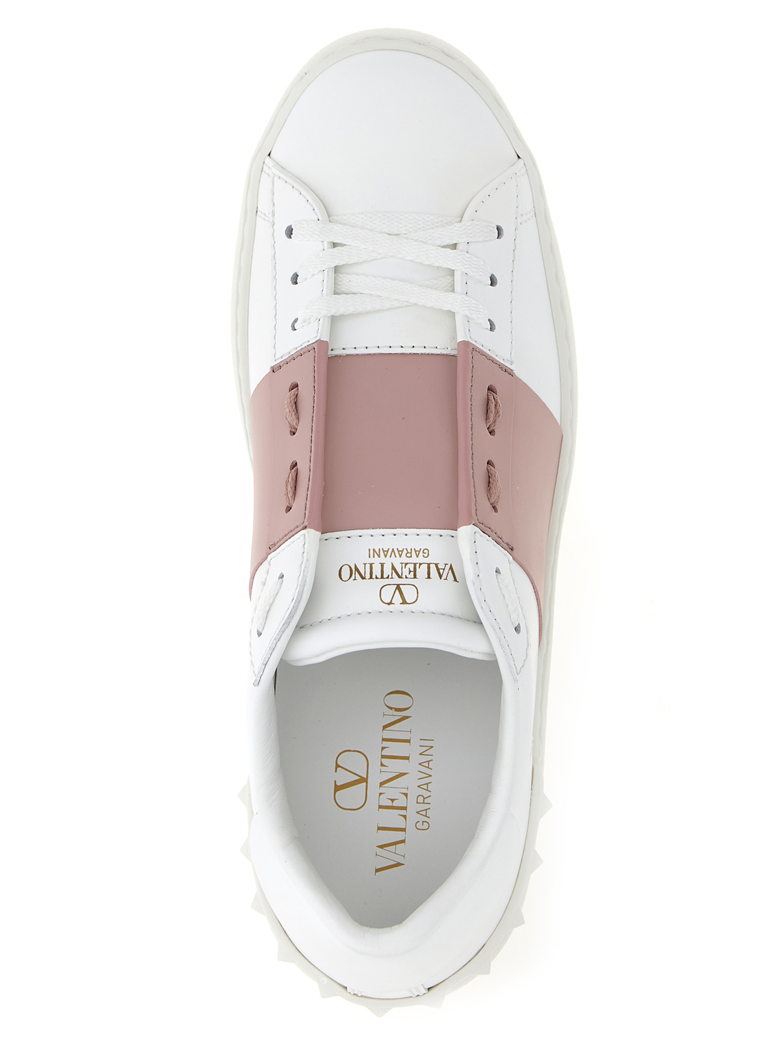‘Open’ calf leather sneakers with contrast band, embossed logo on the tongue, lace-up closure, rubber sole with stud detail on the back.