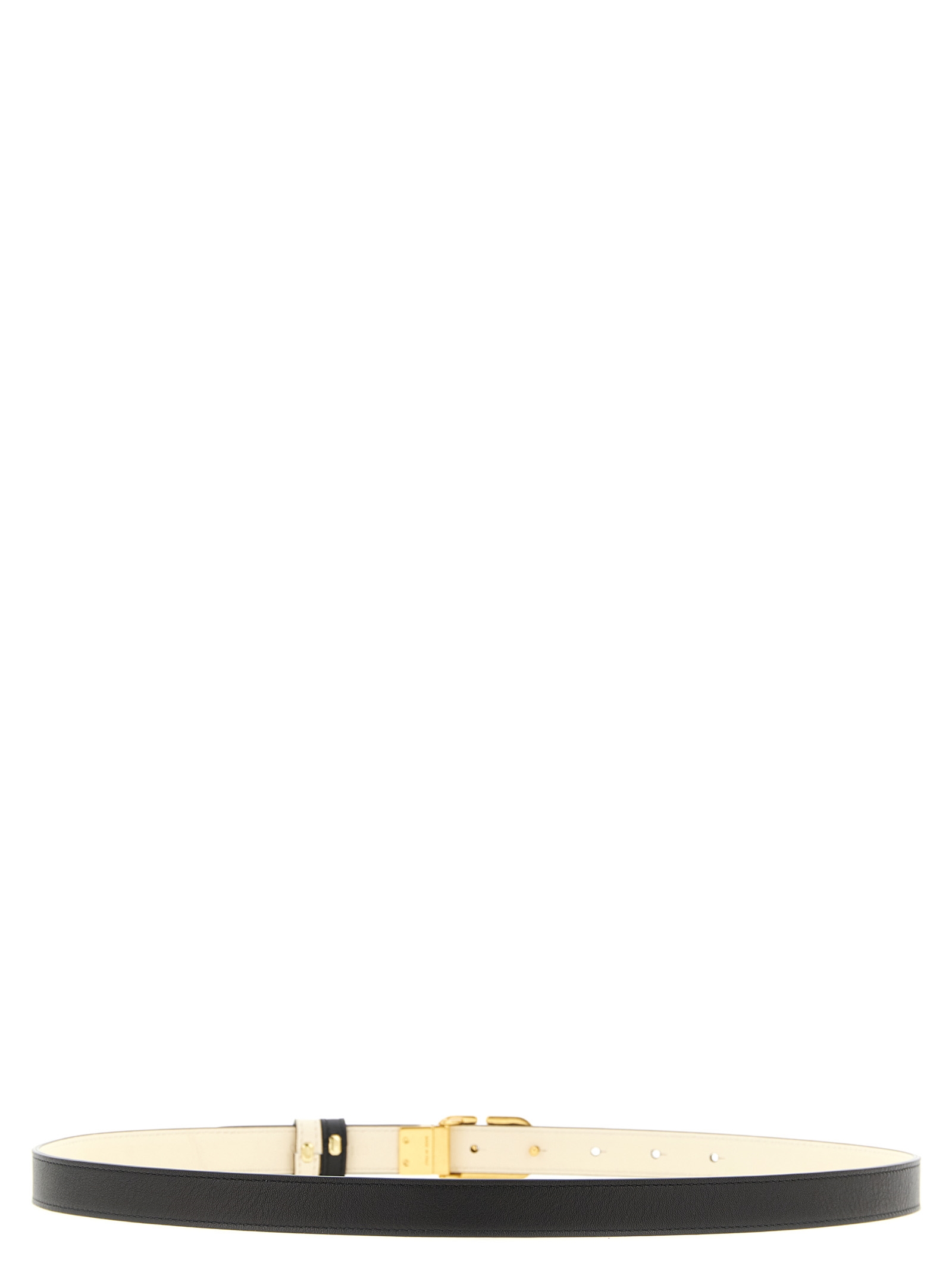 Reversible belt in polished calf leather, VLogo Signature metallic buckle with antique brass finish.