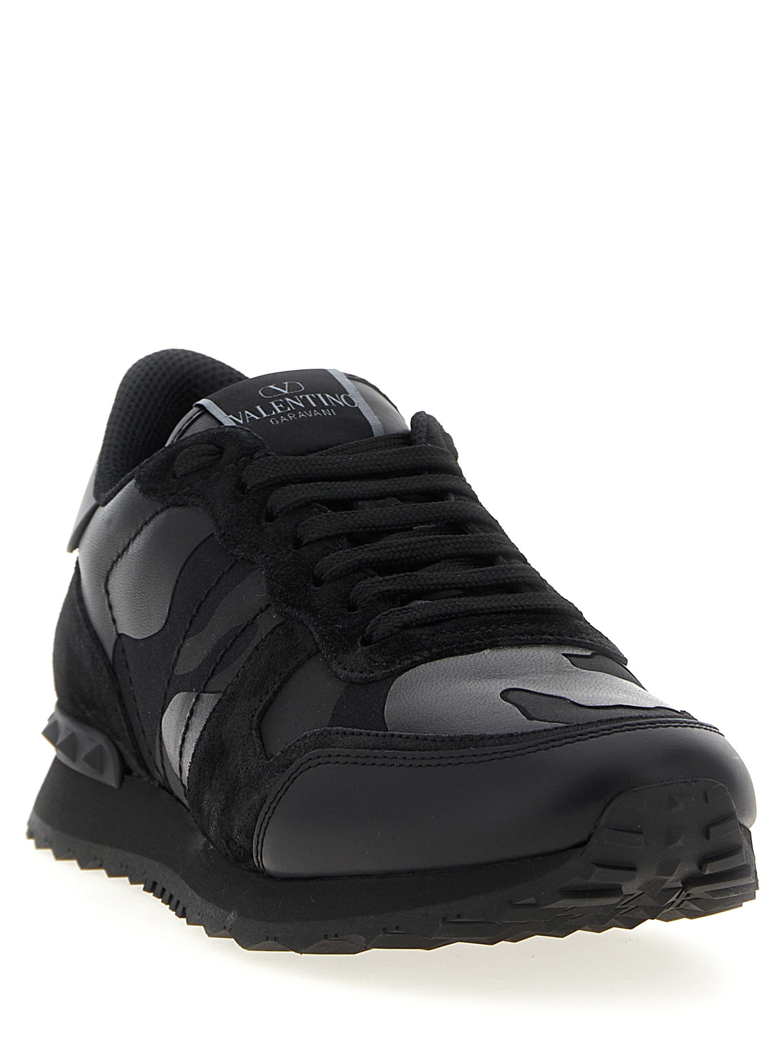 ‘Rockrunner’ fabric and nappa leather sneakers with tone-on-tone camouflage pattern, lace-up closure, rubber sole with stud details.