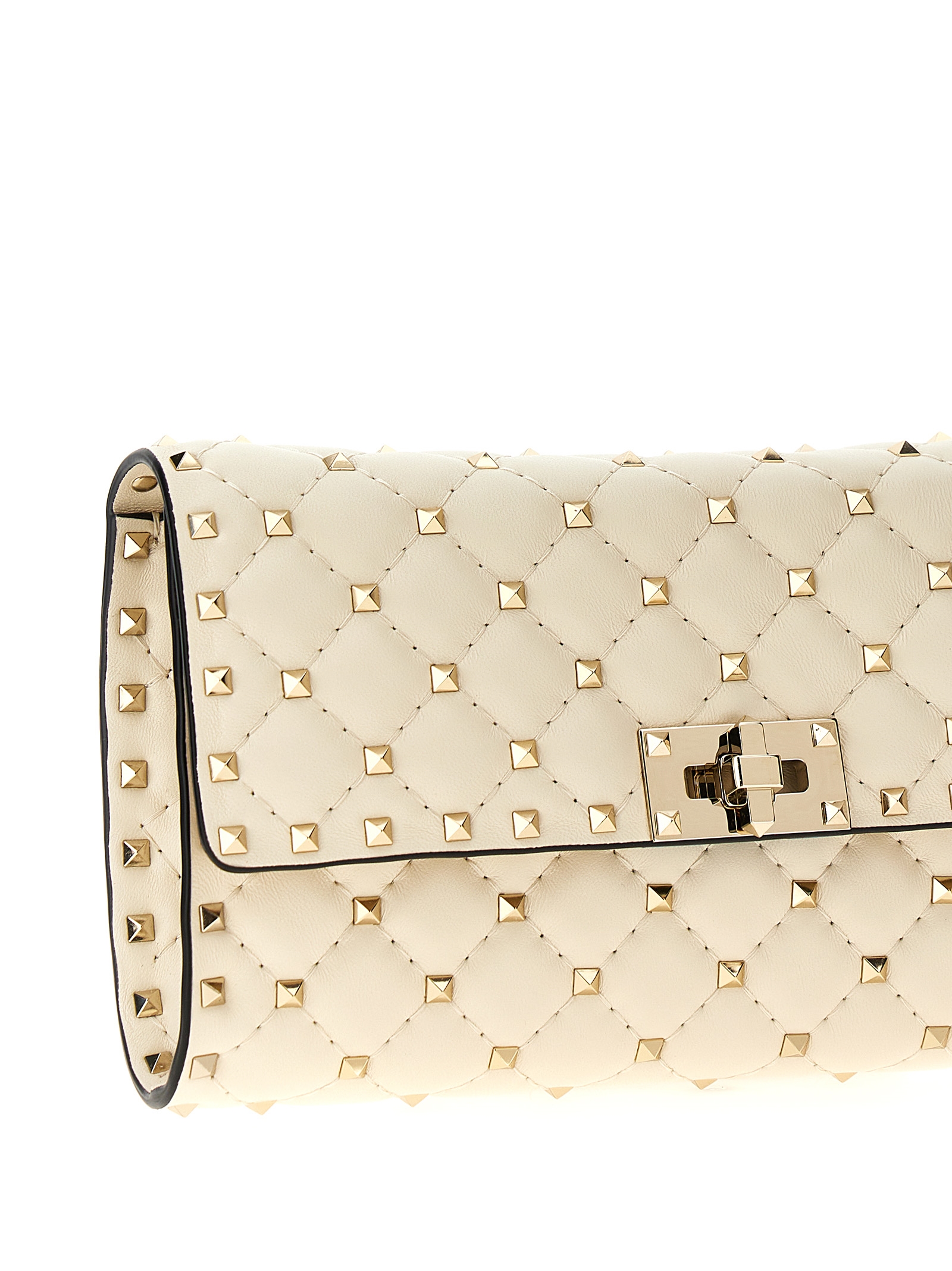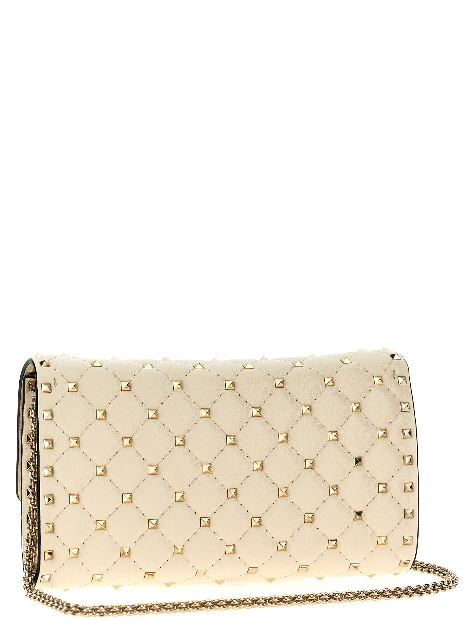 ‘Rockstud Spike’ quilted nappa leather shoulder bag with stud appliqué, metal flap closure, removable chain shoulder strap.