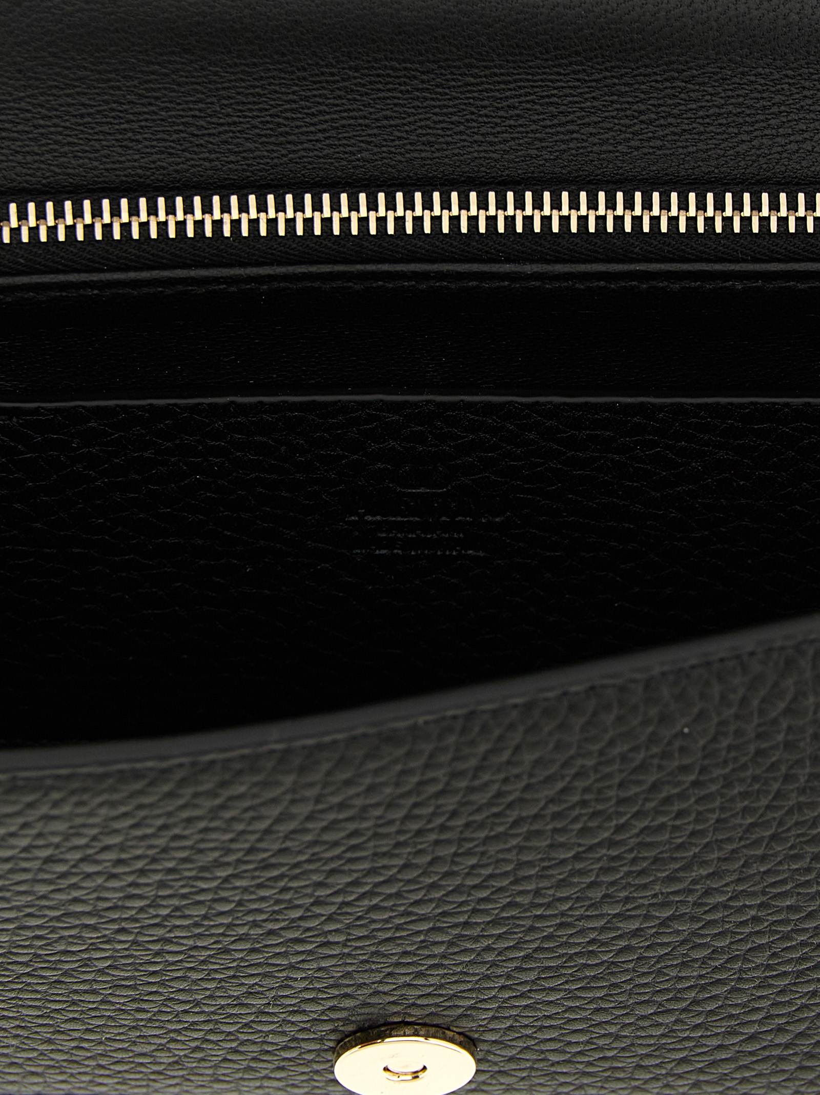 ‘Rockstud’ wallet on chain in grenade calf leather with stud application, fixed handle, magnetic flap closure, removable chain shoulder strap, nappa lining.