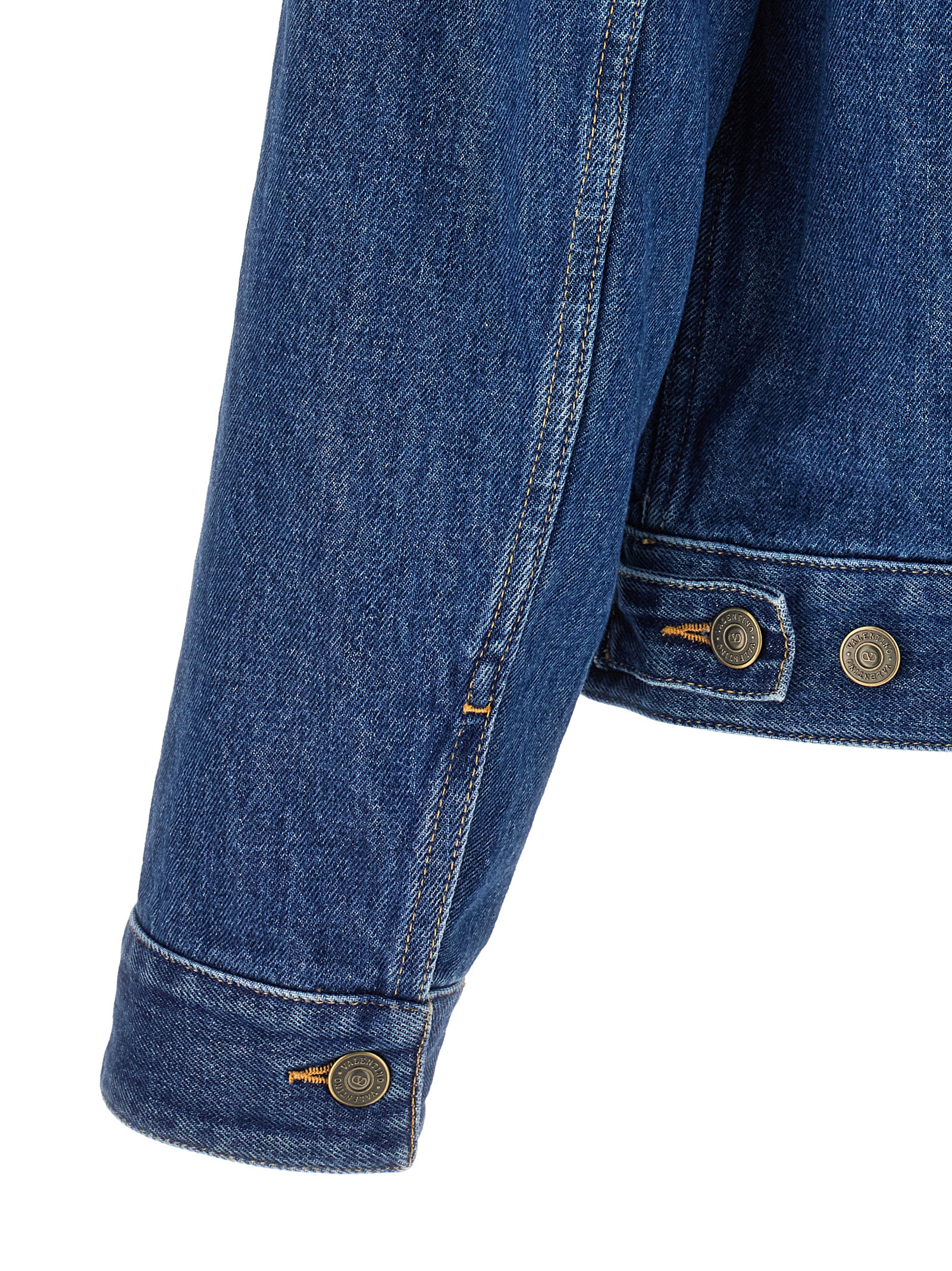 ‘Valentino’ jacket in cotton denim with contrast stitching, pocket with VGold metal antiqued detail, shirt collar, front button closure, pockets, long sleeves with cuffs and slightly dropped shoulder.