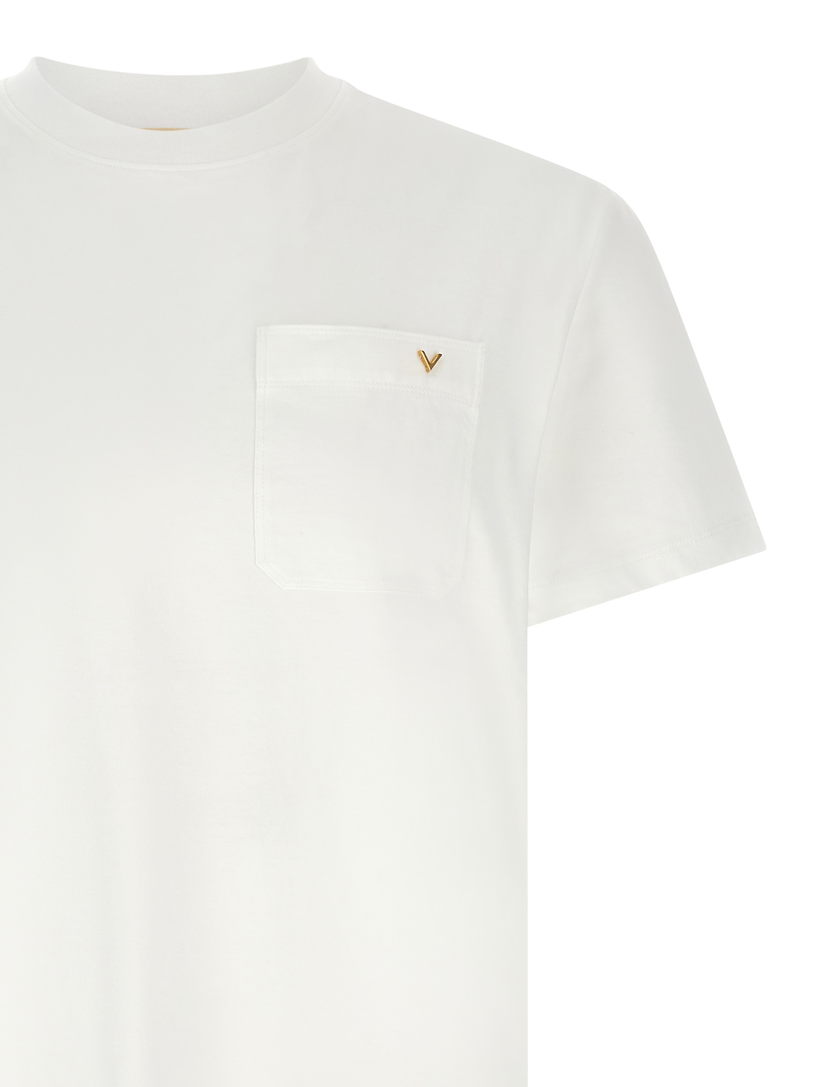 ‘Valentino’ cotton T-shirt, pocket with antiqued effect metal ‘VGold’, crew neck, short sleeves with dropped shoulders.