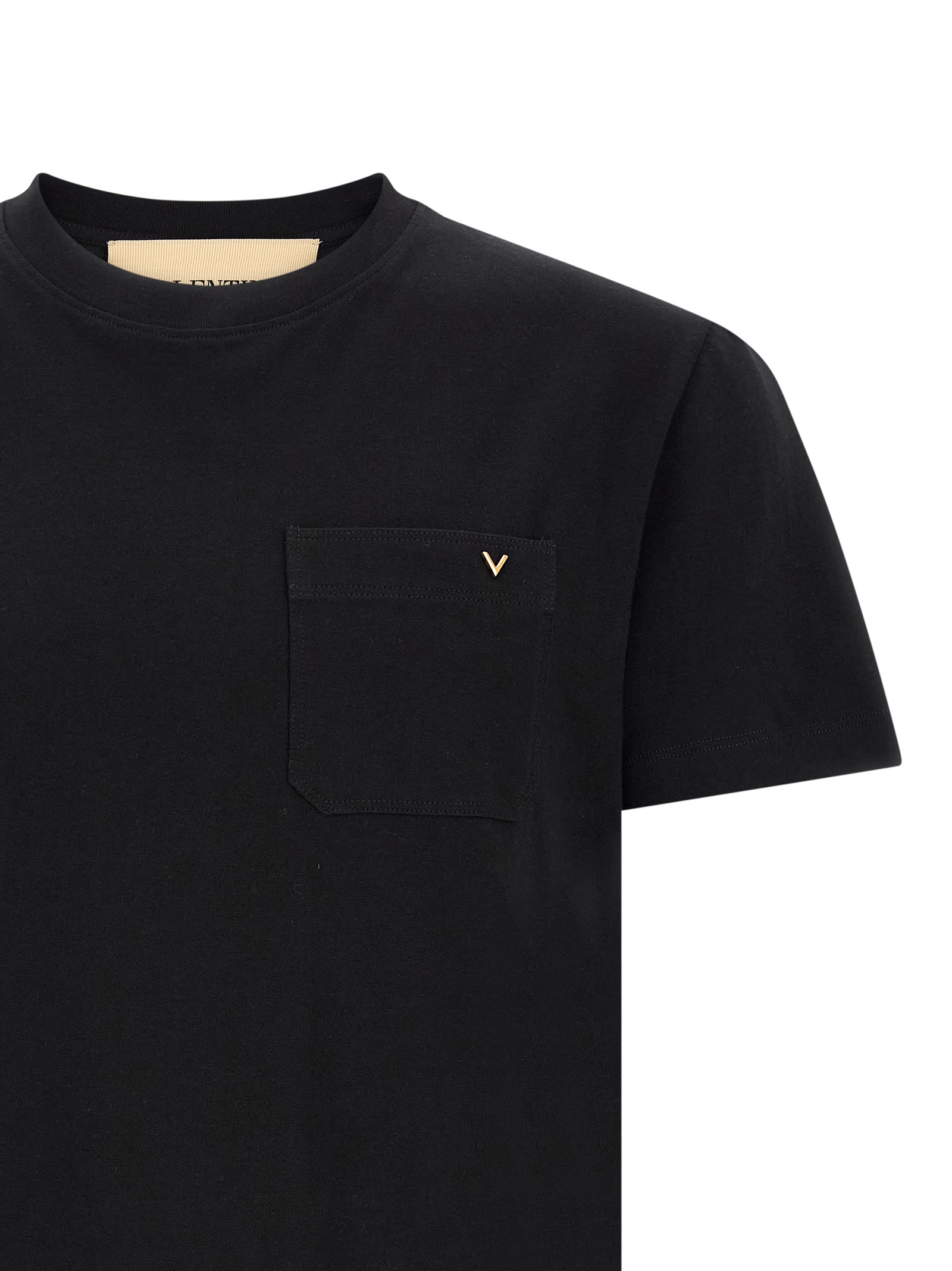 ‘Valentino’ cotton T-shirt, pocket with antiqued effect metal ‘VGold’, crew neck, short sleeves with dropped shoulders.