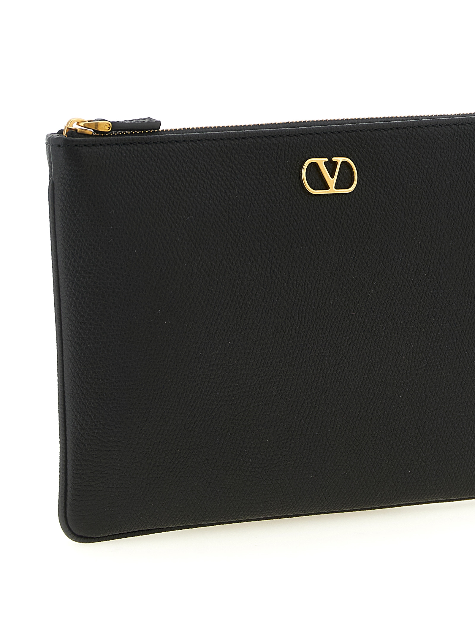 Medium clutch bag in garnet calfskin, Vlogo Signature metallic antiqued effect on the front, top zip closure, nappa lining.