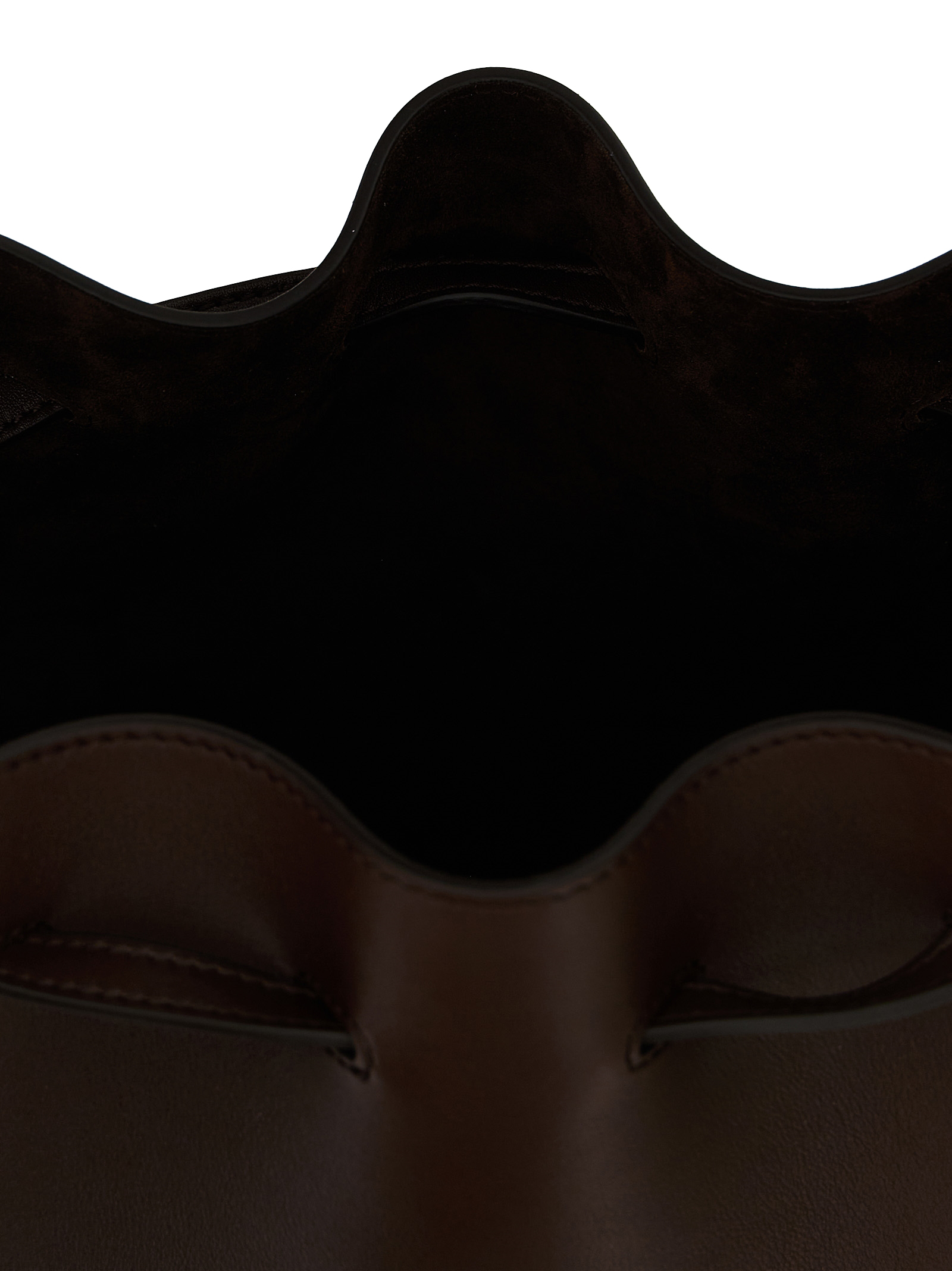 Calf leather shoulder bag, VLogo Signature in antiqued metal on the side, adjustable handle, drawstring closure with tassels.