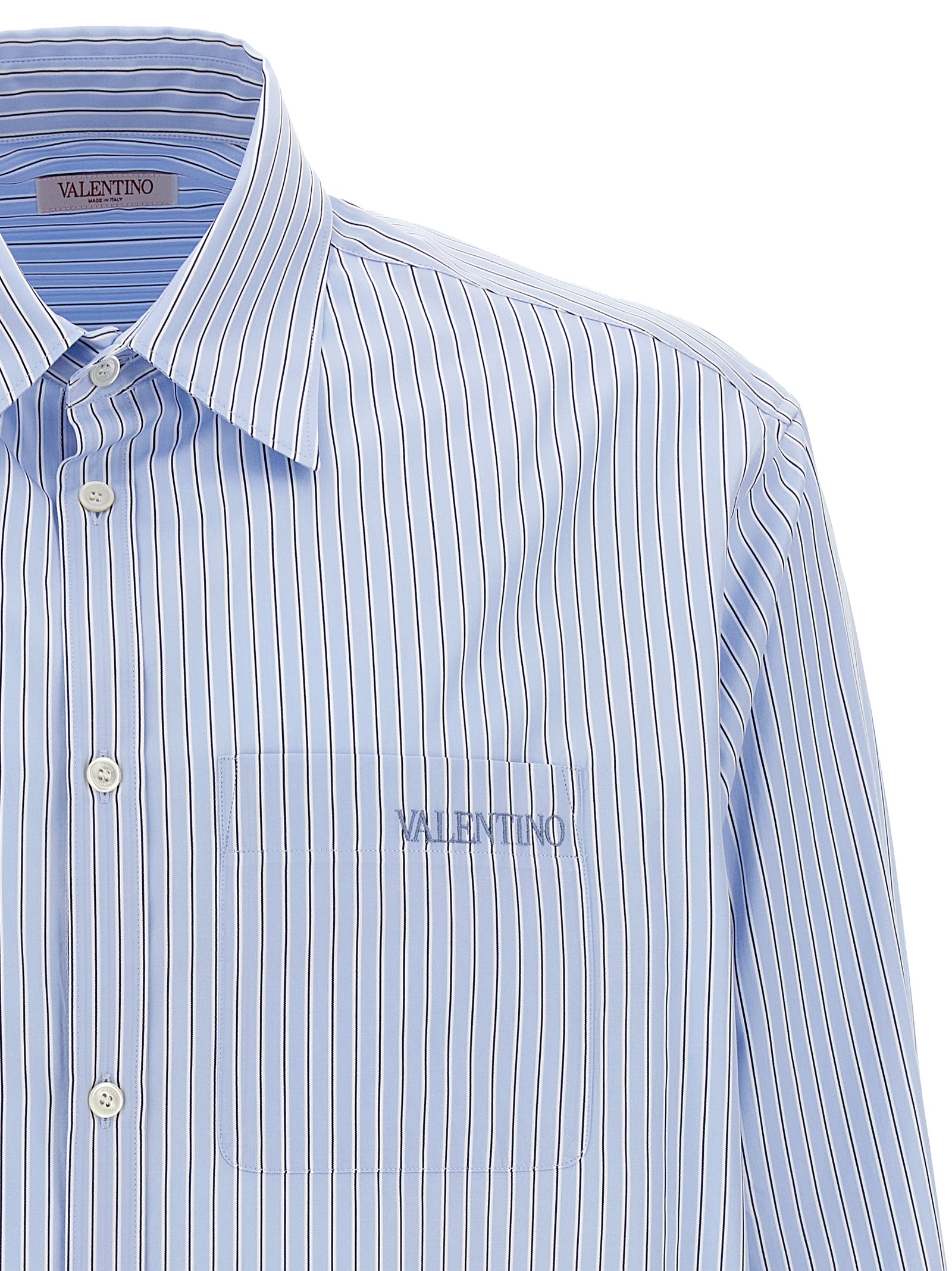 Striped cotton shirt, with front pocket with logo embroidery, button closure, and long cuffed sleeves.