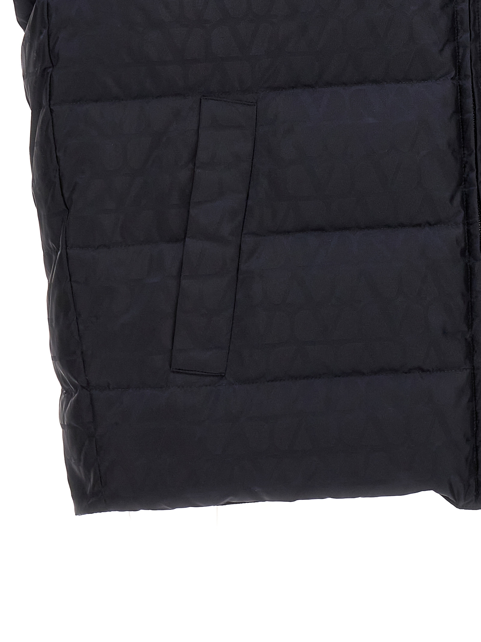 All-over ‘Toile Iconographe’ nylon vest with feather padding, zip closure, pockets.