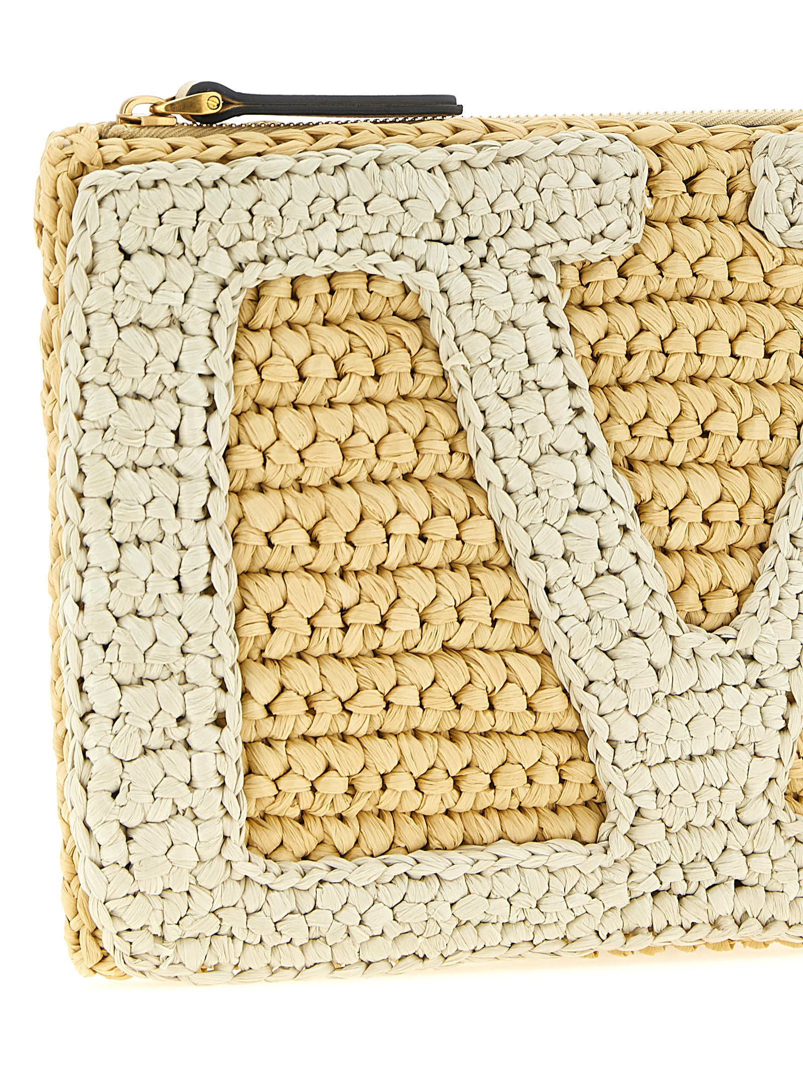 ‘Viva Superstar Crochet’ clutch bag in synthetic raffia with contrast maxi VLogo Signature on the front, top zip closure with leather tie rod, canvas lining.