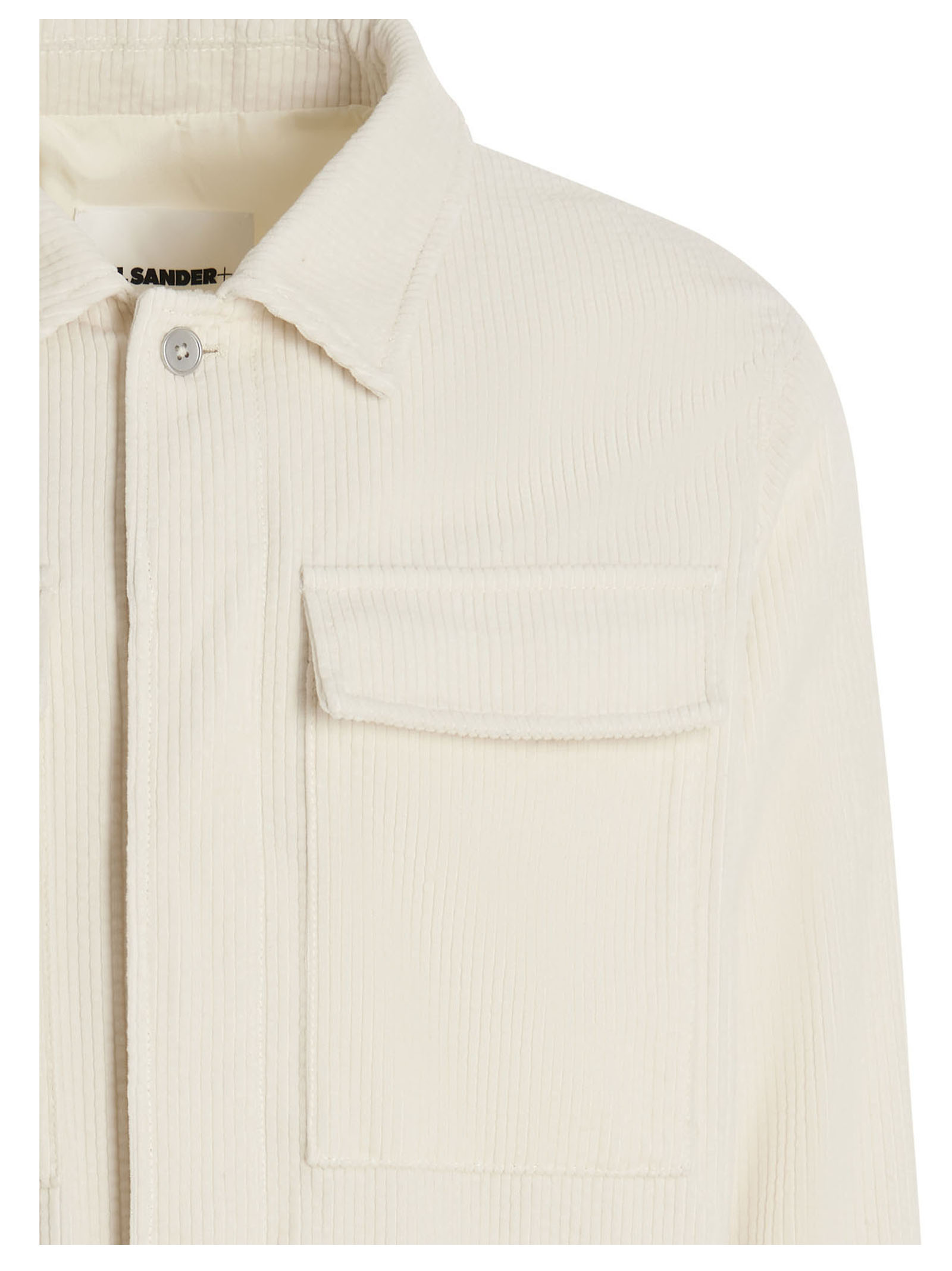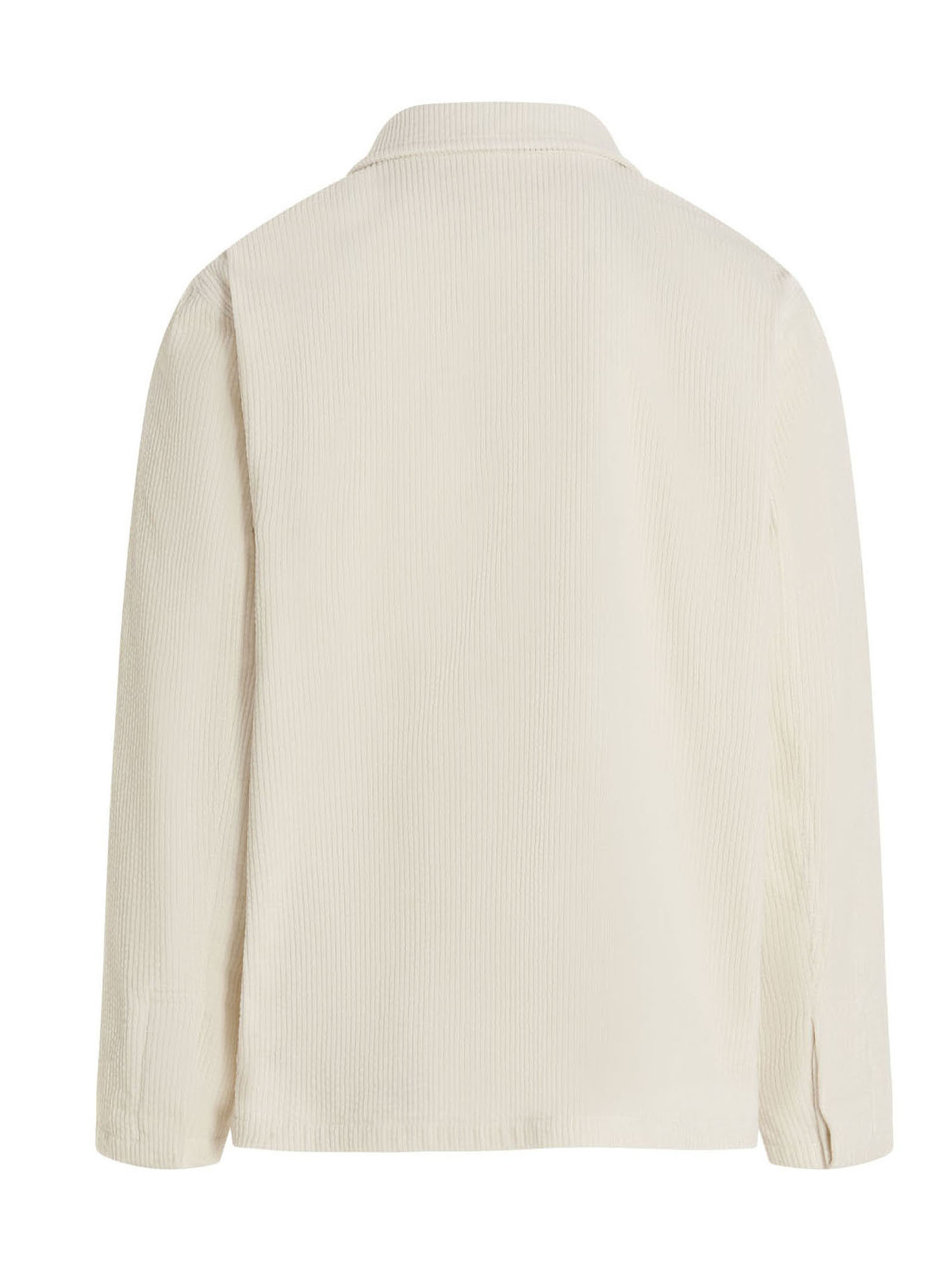 Corduroy overshirt with a collar, hidden button closure and a double patch pocket on the chest.